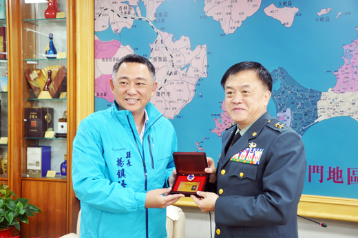 前金防部指揮官、現任國防部後備指揮部指揮官的姜振中中將,昨日上午接受金門縣縣長楊鎮浯頒授榮譽縣民證,以表彰他在時任金防部指揮官任內,致力於金門地區防衛作戰、觀光產業及軍民關係之推展,及建立軍民良好關係互動的努力。楊縣長希望姜振中中將有空多回金門走走,並認為姜中將不管在哪裡服務,都是金門力量的延伸。 姜振中則盛讚,縣府促成金門官兵在地健檢,是一項德政。 這項頒授榮譽縣民證儀式,昨日上午九時三十分在縣長室舉行,在場見證的有國防部後備指揮部少將政戰主任武立文、南部地區後備指揮部少將指揮官朱志保、國防部後備指揮部上校處長李傑、南部地區後備指揮部上校主任胡毓隆、金門縣後備服務中心上校主任胡慶緒、中校副主任許澤鑫,以及金門縣政府民政處長陳世保、副處長許慧婷等人。 姜振中對於楊縣長促成金門縣籍子弟一千五百人在服役時可以在金門醫院體檢,以及列管後備軍人一萬餘人的金門縣後備服務中心在編階可以提升為上校,跟其它縣市可同階,相當肯定和感謝。並強調明年五月全國團長聯誼,會拉到金門來舉辦,促進金門觀光。他也表示,金門是個好地方,退休後要回金門當志工。 縣長楊鎮浯表示,姜中將在金門服務任內,備受各界肯定,且非常照顧金門籍子弟,做事效率高,頒授予金門縣榮譽縣民證,就是更要綁緊一點,提醒他時時刻刻都是金門人,更是金門力量的延伸。 姜振中於2018年7月1日到2019年7月1日擔任金防部指揮官,現任國防部後指部指揮官,昨天到金門主持金門縣後備服務中心主任任職布達典禮。典禮前,他先到縣府拜會縣長楊鎮浯,感謝楊鎮浯協助金防部推動在服役官兵就地體檢,方便1500名金門籍子弟和其他服役的弟兄姊妹可以在金門醫院進行體檢,避免舟車勞頓,並節省交通住宿費用,是一大德政。 此外,姜振中表示,金門地區列管的後備官兵超過1萬人,但後服中心過去主任編制為中校,109年1月1日起位階提升到上校,因此,這次一定要來金門主持布達典禮,顯示後指部對金門後備軍人的重視與尊重。 楊鎮浯感謝姜振中在金防部指揮官任內,除了致力於金門地區防衛作戰,並推展觀光產業及軍民關係;楊鎮浯說,凡在金門服務過離開金門後,都是金門力量的延伸,金門後服中心主任位階提升,就是一例。 楊鎮浯同時說,頒贈榮譽縣民證是要「提醒」姜振中「你還是金門人」。姜振中說,他已規劃明年5月各縣市後指部委顧團團長聯誼會移師金門舉行,協助推動金門觀光;他並允諾,將來退役後要回金門做志工,擔任解說員,向更多人介紹金門。 金門縣政府民政處表示,獲頒榮譽縣民證的姜振中中將,具體事蹟主要有: 一、於107年7月1日至108年7月1日,於金防部服務,擔任金防部指揮官乙職,致力於金門地區防衛作戰、觀光產業及軍民關係之推展。二、107年9月7日執行年度「聯合反登陸作戰」操演,並邀請鄉親及學生代表參加,致力推展金門地區防衛任務著有成效。三、108年1月20日主持金門縣後備服務中心「108年後備軍人晉任暨幹部表揚活動」,邀請金門縣長楊鎮浯及各界地方仕紳出席,「全民國防」共識。四、於108年1月27日與金門大學校長陳建民共同研擬推展ROTC大學儲備軍官訓練團合作計畫,藉由軍中服務與歷練搭配求學期間的自由學風與各項專業技能養成,以培養社會及國軍優質的人力。五、於108年5月16日參與「浯島城隍遷治339週年繞境」,協力推動地方事務,建立良好軍民關係。六、108年6月22日參加「胡璉將軍逝世42週年」追思祭典,與金門縣縣長楊鎮浯共同擔任主祭官,建立良好軍民關係。七、於107年至108年期間全力配合縣府「非洲豬瘟」防疫要求,加強金門軍用機場安全查驗,並強化宣導防區官兵防疫觀念,有效降低疫情擴散風險。八、於107年至108年期間戮力推展大膽島上岸際據點、碉堡原貌修繕及環境綠美化工程,推展地方觀光,深獲民眾肯定,成效良好。