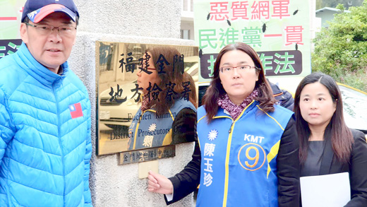 立委選戰倒數中,候選人陳玉珍昨(三十一)日在律師陪同下,對另一位候選人陳滄江以及蔡建偉、金沁心等多位網友,以違反選罷法、妨礙名譽,前往地檢署按鈴申告。而陳滄江則在臉書回應表示:「有關陳玉珍委員介入烏坵國防工程案,請法官馬上開庭,並速審速結,所有陳述事情都是有所本,法官自然會查明真相,金門不能再鄉愿是非不明,讓政治人物受全民檢驗」。 陳玉珍表示,立委是金門唯一一席中央民意代表,她對於對手前議員陳滄江、蔡建偉等人,一直利用網路對她抹黑、帶風向的做法不以為然,並與靠北金門管理者蔡建偉配合,一再指使網軍惡意對她中傷攻擊。 陳玉珍昨日在國民黨金門縣黨部主委石兆瑉陪同下前往地檢署,除了再次宣誓反賄選乾淨選舉的決心,並針對近日遭到對手陳滄江的惡意抹黑、扭曲事實的不實指控提出澄清,同時也指出對手使用的手法意圖使人不當選的違法行逕非常明顯,為遏止不當選風及惡質選舉花招,在忍無可忍之下決定以訟止謗,端正視聽。 陳玉珍說,近期她都在關切遠航停飛衝擊離島交通與春節加班機等民生議題,以及反滲透法是否會讓小三通關閉等,因此她特別強調自己所為合法公開透明可受各界檢驗,向地檢署提告就是希望司法還其公道。 此外,對於三立電視台斷章取義,引用錯誤訊息誤導全國民眾,陳玉珍也表示,在外交部抗議事件中,全身被夾住長達將近一個小時,三立電視台卻斷章取義,只引用部分畫面,試圖造成她名譽上損害,三立電視台真的像韓市長所說的,應該改叫兩立,因為已經沒有良心了。因此將對三立電視台提告。 陳玉珍也呼籲所有候選人,打一場充滿正能量的乾淨選舉,共同維護金門乾淨、公正、無賄的選舉環境。