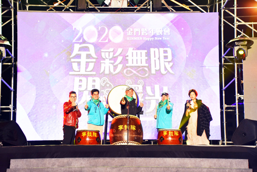 2020跨年晚會首度移師東半島,昨晚在山外圓環旁空地舉行,精彩的表演、溫熱的美食,讓整場活動嗨翻一整夜。 揮別2019迎向2020,今年的跨年晚會以「金彩無限、閃耀曙光」為主題,晚間7點起在金湖鎮山外圓環旁空地倒數跨年熱力開唱。本次邀請八組強力陣容,有王識賢、卓文萱、流氓阿德、張文綺、許書豪、廖柏雅、知己二重唱及小朋友最喜歡的奶油哥哥、櫻桃姐姐連續六小時接力開唱,還有主持風格風趣的沈玉琳及名模若綺與金門主持界一姐陳衍利共同搭檔主持。今年也首創雷射燈光秀與煙火,180秒燦爛絢麗的煙火將晚會帶到最高潮,在民眾一片歡呼聲中倒數迎接新年。 縣長楊鎮浯向在場鄉親表達感謝,他表示自接任縣長以來已匆匆一年,感謝縣府行政團隊和各鄉鎮的夥伴們共同為鄉親打拚、共同為金門的未來努力;也感謝鄉親對縣府的鞭策、鼓勵,縣府也將堅定信念繼續走下去。今年首度將晚會移師到金湖,縣長表示對東半島的建設不會停下,有信心金門東半島日後越來越好。 晚會由縣長楊鎮浯、副縣長黃怡凱、秘書長陳朝金一起鳴鼓啟動,台下同時將幾乎覆滿整個觀眾席的大布幕拉起。表演由許書豪打頭陣自彈自唱勁歌開場,一連唱了《城市狂響》等四首歌;接下來由知己二重唱等藝人與金門在地表演團隊穿插演出,精彩的表演,令人甘冒著冷風在台下欣賞。卓文萱的《啾咪啾咪》、《不要不要》,讓台下聽眾們也不禁舉起手中的加油棒用力揮舞。藝人張文綺表演時,由於有民眾不小心踩到電線,造成現場聲音一度中斷約十分鐘。 除了超強藝人卡司演出之外,由徵選出的三組金門在地優質表演團隊,KDC金門流行舞蹈團、金寧中小學寧鼓隊及國立金門大學街舞研究社上台演出,多元節目將點綴晚會。寧鼓隊本次除了擊鼓演出外,同時結合舞蹈,令演出在聽覺之外多了視覺的呈現。現場周邊還有二十八攤的創意市集,從下午三點就先將人潮聚攏起來,鍋貼、雞排、烤香腸、熱湯這些熱食之外,還有令人嚐了「打機靈」的冰淇淋,更有精緻的手工鋼筆等特色攤位。 文化局策劃晚會中的周邊活動,民眾上「藝起金門」粉絲專頁按讚、填寫新年祝福語黏貼上專屬愛心背板,即可領取一對充氣加油棒;讓所有民眾為之引頸企盼的是晚會中的摸彩活動,民眾六點起就到服務台排隊領取,晚到的民眾對於發完的摸彩券只能扼腕。最後抽出電動自行車、43吋液晶電視、任天堂Switch等豐富大獎給與幸運的在場民眾。摸出電動自行車之後,王世賢還特意演唱《腳踏車》這首歌。整場晚會就在期待中獎的高昂情緒中迎來結束,也對於新的一年的到來寄與希望。