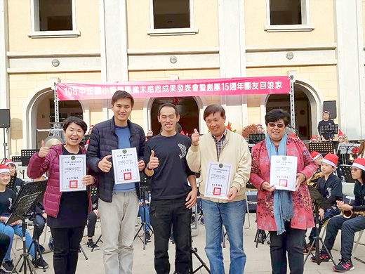中正國小管樂團日前舉行歲末感恩成果發表會暨15週年團友回娘家活動。 中正管樂團於中正國小中庭辦理了一場有別於以往成果發表的音樂會,會中邀請歷任校長、主任、組長與指導老師蒞臨現場,由現任管樂團家長後援會會長李錫威親贈感謝狀表達家長們心中的感謝,並在悠揚的樂音中展現15年來管樂團穩定成長的營運成果。 中正國小管樂團為地區第一支國小管樂團,創團至今已邁入第15個年頭,透過歷任行政與指導的用心經營,樂團日趨茁壯。為分擔學校行政的壓力,於創團之初同時成立家長後援會,鼓勵入團家長陪伴學童一起學習,並以行動支持學校社團運作精緻化。 中正管樂團為慶祝15歲生日,難得未參加金門縣音樂協會辦理的『愛管弦事』發表,而選擇在剛完成西棟校舍改建的美麗校園內辦理『中正管樂108年歲末感恩成果發表會暨15週年管樂團團友回娘家活動』。 活動當日中午,先由現任後援會幹部家長們於活動中心二樓舉辦家長聯誼餐會,已退休的創團時訓導處陳庭芳主任特別蒞臨現場致贈紅包予以鼓勵,另由董昱珊老師、張震宇老師主持耶誕禮物抽獎遊戲,將活動現場帶入第一波高潮。 中午過後緊接著辦理音樂會,音樂會開始時間未到,會場即已座無虛席,眾多樂團畢業團友與家長相約去到現場,一同慶祝樂團15週年紀念。 金門縣政府教育處副處長陳家輝以曾任中正代理校長之身分親臨致意,社教科科長許能麗、退休校長張樾、曾任後援會副會長的文化局副局長黃雅芬亦到場欣賞演出。 中正國小管樂團現有團員將近70人,新生團擔綱開場,席中不乏僅學習兩個月的小朋友上場表演,足見學童學習的投入與熱愛。緊接著,由全團共同吹奏,曲目難度較高且聲響飽滿的表演,贏得現場熱烈的掌聲,尤其搭配應景的耶誕歌曲及戴著耶誕帽的吹奏團員,展現出管樂活潑的特質。 最終,在競賽團演奏來年即將參加全國學生音樂比賽的自選曲,且是創團以來難度最高的曲子『Sedona』樂音中為演出劃下令人驚嘆的句號。曾是中正管樂團的歐陽再奎老師代表畢業團友向母校與樂團致上感謝的話語,高度支持藝文團隊發展的楊肅元老師以溫馨又歡樂的話語鼓勵學子繼續努力,為整場活動劃下完美的句點。