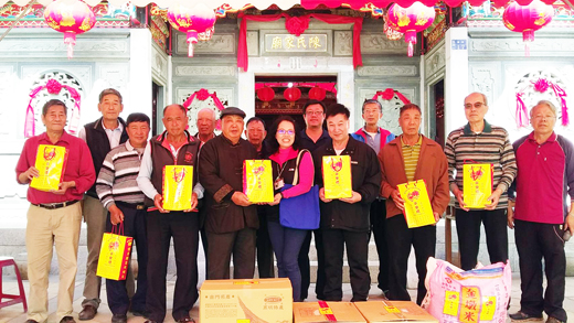 昨適逢冬至祭祖,高坑陳氏家廟特別配合明(24)日登場的奠安慶典,安排了一場溫馨的公益活動,藉著宗親和企業聯合贊助的物資,致贈晨光園工生代表平安禮,期待秉持先人友愛鄉里的訓示和疼惜照顧每個人的精神,讓社會更和諧、更溫馨。 這場集結宗親力量共同贊助平安禮的捐贈儀式,昨天在高坑陳氏家族冬至吃頭祭祖現場進行,活動由奠安主任委員陳榮華主持,獲邀的晨光園工生代表到場受禮,對於陳氏家廟的用心,與會的晨光代表一行也表達了萬分的謝意。 高坑陳氏宗親會理事長陳容為表示:藉著家廟奠安慶典活動,為發揚陳氏先人潛德之幽光,宗親會總幹事陳德鵬日前特別號召高坑企業有限公司,高城製麵廠、金門代書事務所、是誠陶笛、小林陳舍、金農特產、金龍體育用品及眾宗親姻親子孫輩等匯集微薄力量,聯合贊助平安米、平安麵線等奠安祈福禮品,一方面希望大家共同來參與,為弱勢團體貢獻一份心力,也希望藉以拋磚引玉,喚起個人與企業的愛心,出錢出力,打造「社會有情,人間有愛」正向循環的善力。