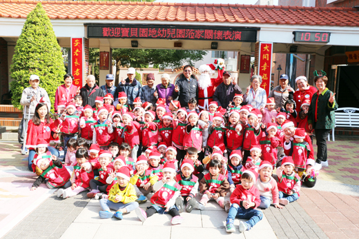 叮叮噹,叮叮噹,鈴聲多響亮!在這溫馨的十二月,大同之家園區充滿了歡笑聲。昨(23)日上午十時由金門縣私立寶貝園地幼兒園園長李玉麗帶領全校共100多位師生到大同之家關懷慰問表演,年齡層從二歲到五歲,阿公阿嬤看到幼兒的到來,很開心的抱抱小寶貝,並拍下一張張溫馨的合照。 大同之家主任楊志斌歡迎小朋友的到來,除了致贈感謝狀,還精心準備小禮物送給天真活潑的小貴賓,楊志斌表示自己也有一位三歲的小孫女,看到一個個可愛的小朋友,如同自己的孫子般,並邀請他們與阿祖們一起合照。園長李玉麗感謝大同之家給小寶貝們表演的舞台,最後請孩童跟阿公阿嬤們說聲「我愛您」以及「聖誕節快樂」,並將所帶來的小蛋糕送給長輩們享用,現場一片片的歡笑聲,在小朋友喊主任爺爺再見、阿祖再見聲中,讓本次的聖誕關懷慰問之旅溫馨圓滿地結束。