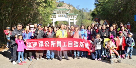 金沙鎮公所日前舉辦「108年度員工自強活動暨環境教育」,鎮長吳有家帶領團隊於假日出遊,攀登太武山。沿途飽覽太武山自然景觀和人文風名勝,員工三五好友或親子同遊,健行運動,調節身心與工作壓力,好不愜意。金沙鎮公所期藉此活動,促進員工了解人和環境的關聯,環境之演變和特色並能提昇對環境的關懷情懷,也增進員工彼此交流。 金沙鎮公所「108年度員工自強活動暨環境教育」於日前舉辦,由鎮長吳有家、課室主管及同仁,自上午9時起由玉章路出發,攀登太武山,欣賞沿途自然景觀,也共度假日時光。金沙鎮公所表示,太武山是金門名勝之一,亦是觀光客抵金必訪之境,由於早期軍管保留下豐富多樣的植物,以及沿途許多石碑,毋忘在莒等勒石群及海印寺等都代表著金門豐富的人文風情。農曆春節期間,太武山更是闔家走春首選之一,故特別結合環境教育規劃今年員工自強活動,讓大家利用假日與家人一起出遊,走在玉章路上,體會太武山麓及沿途自然環境與生物多樣性,增進個人與環境相互依存關係的瞭解,提升生態平衡等觀念及意識,也促進員工間之交流互動。 活動於日前舉行,金沙鎮公所員工或攜家帶眷或三五好友相約,假日走出戶外擁抱大自然,登山健行促進健康,也讓平日忙碌的生活和工作壓力獲得調節。最後,並一同於金湖飯店餐敘交流,彼此共度一個愉快的假日,充滿能量繼續出發。