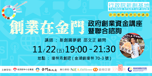 響應全球創業週串聯活動 三創平台11/22辦創業在金門講座