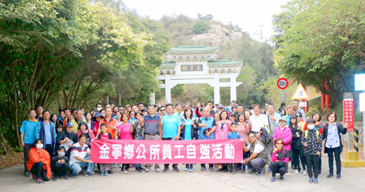 金寧鄉公所昨日辦理員工自強活動,鄉長楊忠俊帶領鄉公所團隊員工及眷屬一起健走,鼓勵大家多運動健身。楊忠俊也勉勵鄉公所團隊做好本職工作,認真負責執行各鄉鄉務,服務鄉親。 鄉公所員工和眷屬近300人熱絡參加登山健走活動。金寧鄉長楊忠俊夫婦和鄉代會主席莊振源、副主席楊水信、鄉代表陳秀金、黃文欣、李琳瑯、陳孝融、鍾尚志、辛愛華及各村村長,也一起從玉章路步行到海印寺廣場。楊忠俊感謝鄉代會主席莊振源及鄉代表們參與,支持鄉務工作。 午間,鄉公所安排在昇恆昌金湖飯店座談聯誼,鄉公所員工及眷屬共聚一堂。鄉長楊忠俊慰勞員工執行鄉務,服務民眾的需求,期望大家一秉服務的熱忱,繼續做好服務鄉親的工作,提升行政效率,共促地方發展。 楊忠俊希望透由自強活動,增進員工彼此間的交流,鼓舞工作士氣,提昇服務效能。楊忠俊也鼓勵員工要多帶家人出外走一走,多運動健身,運動出健康和幸福。