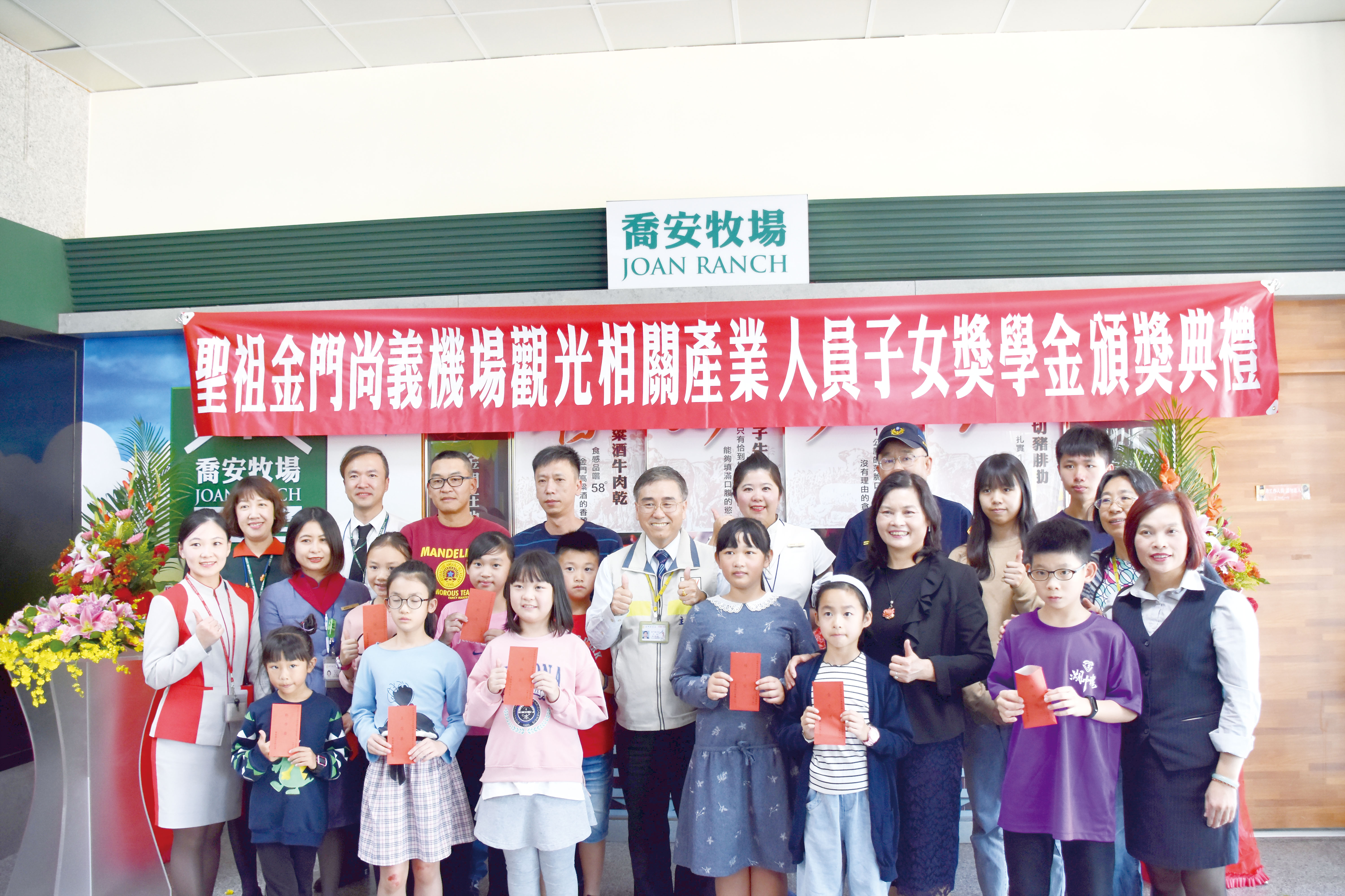 聖祖食品有限公司本著企業關懷教育的理念,所設置的「107學年度聖祖金門尚義機場觀光相關產業人員子女獎學金」,昨日假金門航空站舉行頒獎儀式,由該公司總經理陳緣姿、金門航空站主任洪念慈等人頒發各組得獎人員,計有卅二人受惠,陳緣姿獎勵學生不畏艱難、敦品勵學的優異成績表現,期勉珍惜現有的讀書環境,努力求學,學成後返鄉服務回饋鄉里。 開辦獎學金已邁入第十七年的聖祖食品有限公司,自創立以來一直秉持著取之於社會、用之於社會的精神來回饋鄉里,聖祖公司除了機場以外,也於地區七所學校辦理獎學金發放,期盼藉此對優秀學生能有鼓勵作用,未來將會辦理更多的相關活動來回饋、服務鄉里。 這項獎學金頒獎活動,於昨日下午二時在尚義機場金門航空站舉行頒獎儀式,該公司總經理陳緣姿、金門航空站主任洪念慈等人頒發各組得獎人員,許多家長也帶領子女前來領獎,分享子女優異成績的成果。 陳緣姿指出,聖祖自創立以來一直秉持著社會責任的理念,身為金門在地企業,不管在食品安全的把關或是培育青年學子上一直是不遺餘力,希望能對金門有所貢獻。聖祖公司辦理這項獎學金,很高興能對各位在求學路上略進棉薄之力,也恭喜各獲獎同學傑出表現,希望能繼續維持優秀的表現,更努力學習,多聽多看多做,設定目標用心認真、堅持,將來定有優異表現。聖祖慈善公益協會將更積極來從事其他公益活動,貢獻社會各階層,讓大家感受到聖祖慈善公益協會的關懷。 洪念慈稱讚聖祖公司回饋社會的經營理念,設置獎學金,鼓勵學子向上,也為企業樹立模範。 昨日獲頒獎學金的學子:大專組:國立台中教育大學黃彥超、銘傳大學洪佳妤、淡江大學林敬皓、淡江大學林姿彤、國立中正大學熊起亨、真理大學吳依純。高中組:金門高中張薾云、金門農工許庭瑋、金門農工林海棠、高雄女中何帆。國中組:金湖國中陳廷瑞、金城國中許筑涵、五福國中何熙、金城國中楊晴、金沙國中張晶、金城國中戴若庭、金城國中林大衛、金城國中梁佑得、金湖國中陳品妤、金湖國中王禹喬。國小組:金寧中小學莊語媗、中正國小董欣薇、金湖國小蘇奕豪、金鼎國小鄭席庸、中正國小吳俞靜、中正國小王苡蓁、金湖國小洪嘉陽、開瑄國小陳毅杰、中正國小王冠程、中正國小王歆淳、述美國小楊于萱、金沙國小黃于嫣。