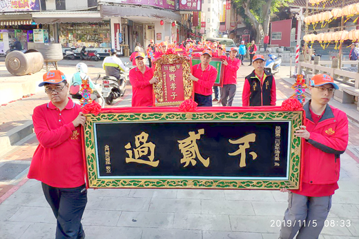 金門賢聚顏氏家廟奠安日前拉開序幕,早上七時左右,身著紅色上衣的男女老少齊聚家廟前廣場,準備迎神主、迎匾典禮。由於今年適逢民間所謂的「大利」之年,各地多有宗祠奠安或寄后土儀式,此次顏氏家廟的奠安儀式在八、九兩日正式展開。 據悉,顏氏家廟在十年前就整修過一次,但因未逢大利之年,故一直等到今年,又二度整修刷新,並隆重舉行奠安禮,據賢聚村史作者顏炳洳稱,上一次顏氏家廟奠安是在民國三十六年,距今已經七十二年之久。故此次奠安非常隆重,兩岸三地、甚至遠從南洋趕來參加的鄉親達數百人,家廟左前方也特別立了一塊大理石碑,正面為奠安誌,背面為顏氏的昭穆序次,以供親友及後世子孫了解。 迎匾迎神主車隊在金城鎮公所前整隊,紅彩、托燈在前,鞭炮大鑼開道,緊接著就是九塊匾額依序展開;在最前頭的二塊匾,分別是彰顯其先祖復聖顏回的「不貳過」匾,及聖旨御賜、表揚明代浯洲孝子顏應佑的「鄉賢孝子」匾。其後,陸續為「提督軍門」、「進士」、「文魁」、「貢元」匾;接著是前福建省主席顏忠誠、前副縣長顏達仁及其公子顏少棠博士所晉的三塊匾。之後,是身穿唐衫的顏氏大老及神主隊伍等。遶境隊伍途經民生路左拐中興路,再右轉中正國小前,後左轉民權路,再左轉莒光路,過貞節牌坊、菜市場,後右轉民族路,到南門體育場。車隊返回家廟後,就展開進主相關儀式。 顏氏人口數雖然不多,但是自古至今也出了不少人才,顏氏宗老說,此次家廟奠安儀式在八、九兩日正式展開,對於民俗研究有興趣的朋友,歡迎前往參觀。