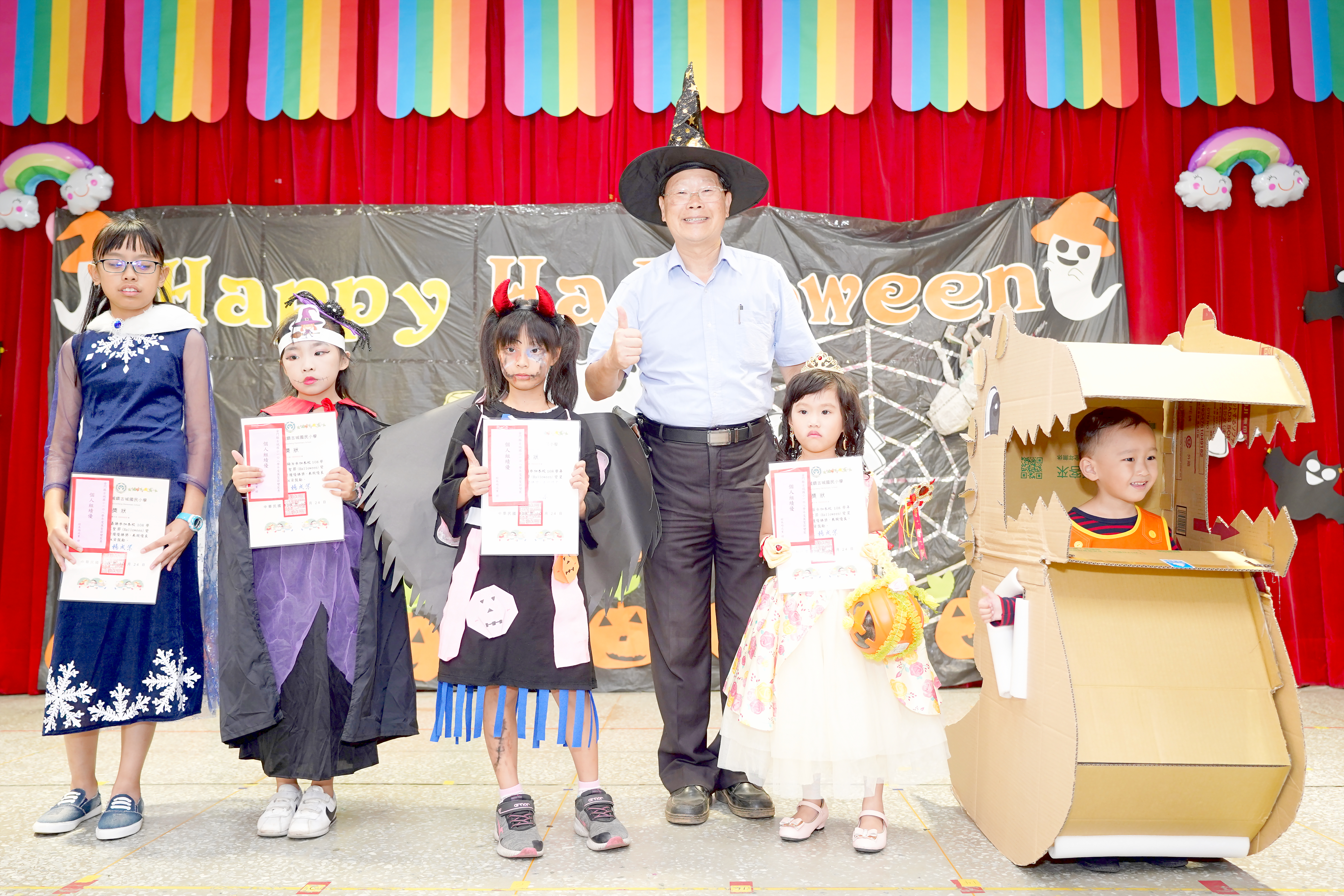 詹宗翰/圖文 結合英語教學,認識外國節慶活動,古城國小萬聖節活動舉行變裝大賽,鼓勵學生發揮創造力,個人獎由501班陳嘉臻、401班黃思穎、301班董珊汝、幼中班黃柔菲、幼小班張宸銨等五位小朋友獲得;榮獲團體組得獎班級為601班、401班、幼小班三班。