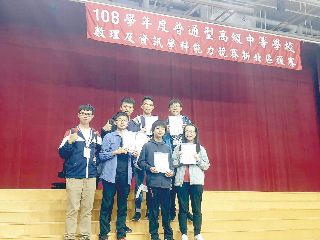 「108學年度普通型高級中等學校數理及資訊學科能力競賽」日前分別於全國五處舉行區域複賽,金門高級中學日前參加該項競賽新北區複賽,在老師們的指導下,學生表現優異,共取得八項佳作以上的成績。 為加強輔導公、私立普通型高級中等學校推動數學、自然學科及資訊教育,全國高級中等學校各年級在學之普通科,及綜合高中學程一年級與二、三年級學術學程學生,以及無學籍自學生,均可報名此項競賽。競賽活動以提高學生對基礎科學及資訊研究之興趣,並藉以鼓勵學生與校際間相互觀摩,提升科學教育品質,分區舉行學科能力競賽,共分台北區、新北區、中投區、高雄區、台灣省區五區,參賽學生在數學、物理、化學、生物、資訊、地球科學等六學科領域競賽。 金門高中歷經校內初賽、區域複賽,在新北區複賽中共獲得八項佳作以上的成績。決賽將在十二月底前舉行,在這些競賽學科獲一等獎、二等獎之學生,將由承辦學校分別推薦參加相應學科的國際奧林匹亞競賽研習營。 金門高中在108學年度普通型高級中等學校數理及資訊學科能力競賽新北區複賽得獎名單如下: 地球科學:第二名蔡依辰、佳作謝菀軒,指導老師薛郁潔;數學科:第八名楊鎧駿、佳作吳宇瑗,指導老師陳彥勳;化學科:佳作王俊懿,指導老師陳瑩翰;資訊科:佳作鄭祺東、陳翊嘉,指導老師楊素菀;物理科:佳作張宸瑋,指導老師楊智琨;生物科:佳作洪詠絜、張君維,指導老師林雅惠。