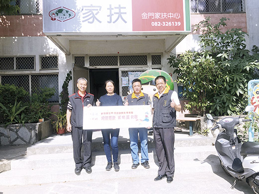 金門新敬業公司負責人陳美霞與夫婿楊肅謙偕同家人一同前往金門家扶中心,捐給家扶中心扶幼館建館專款二十萬元,力助家扶中心早日完成建館使命,以造福地區的弱勢兒童。此筆捐款,由扶幼委員會主委李根遠及家扶中心主任李桂平一同歡喜接受,對於扶幼館的完成,又能往目標邁進一大步! 楊肅謙表示,因看到家扶中心受到大環境之影響,兒童扶幼館興建經費籌措困難,因此偕同妻子陳美霞前往關心,並捐出二十萬元做為建館專款,除貢獻個人微薄之力外,希望能藉此拋磚引玉呼籲各界有能力之賢達人士,一同來關心這個長駐地方、照顧弱勢兒童生活及發展的民間機構,讓它可以永續經營造福金門地區的弱勢兒童及其家庭。 家扶中心扶幼委員會主委李根遠表示,楊肅謙是金門地區熱心公益且樂善好施的地方賢達,除企業經營成功外,他們夫婦二人平日關心地方的教育、文化、消防及警務工作,皆會積極參與並邀集親朋好友,共同為這塊土地貢獻出力量,希望透過地方事務的參與協助,讓社會發展能更祥和,民眾皆更能安居樂業才是金門最大的福報。 家扶中心主任李桂平指出,感謝新敬業負責人陳美霞家族的慷慨解囊,捐助家扶兒童扶幼館建館經費。此次是以家族共同名義,來幫助家扶中心興建扶幼館,除了是希望號召鄉親大眾一同協助家扶中心,讓地方的慈善機構可以一直永續存在,民眾可以藉由這個單位和社工專業人員,來關心自己家鄉的弱勢兒童。 另,李桂平也說,楊肅謙和陳美霞帶領家族人員一起來做善事,從小培養善心善念及關心地方事務的習慣,將來才會對社會貢獻出自己的力量,讓金門這個地方留下優良傳統文化,戶戶和諧家家皆美滿。 金門家扶中心感謝楊肅謙、陳美霞夫婦及其家人楊駿瑋、林智泱、楊秀玲、林宥辰、林展毅、林庭羽、柯景耀、楊沛涵、柯祉圻、柯玨彤、柯善珺、周昆運、楊霈維、周昀蔚和周妘耘等人,共同協助扶幼館建館興建之功德。