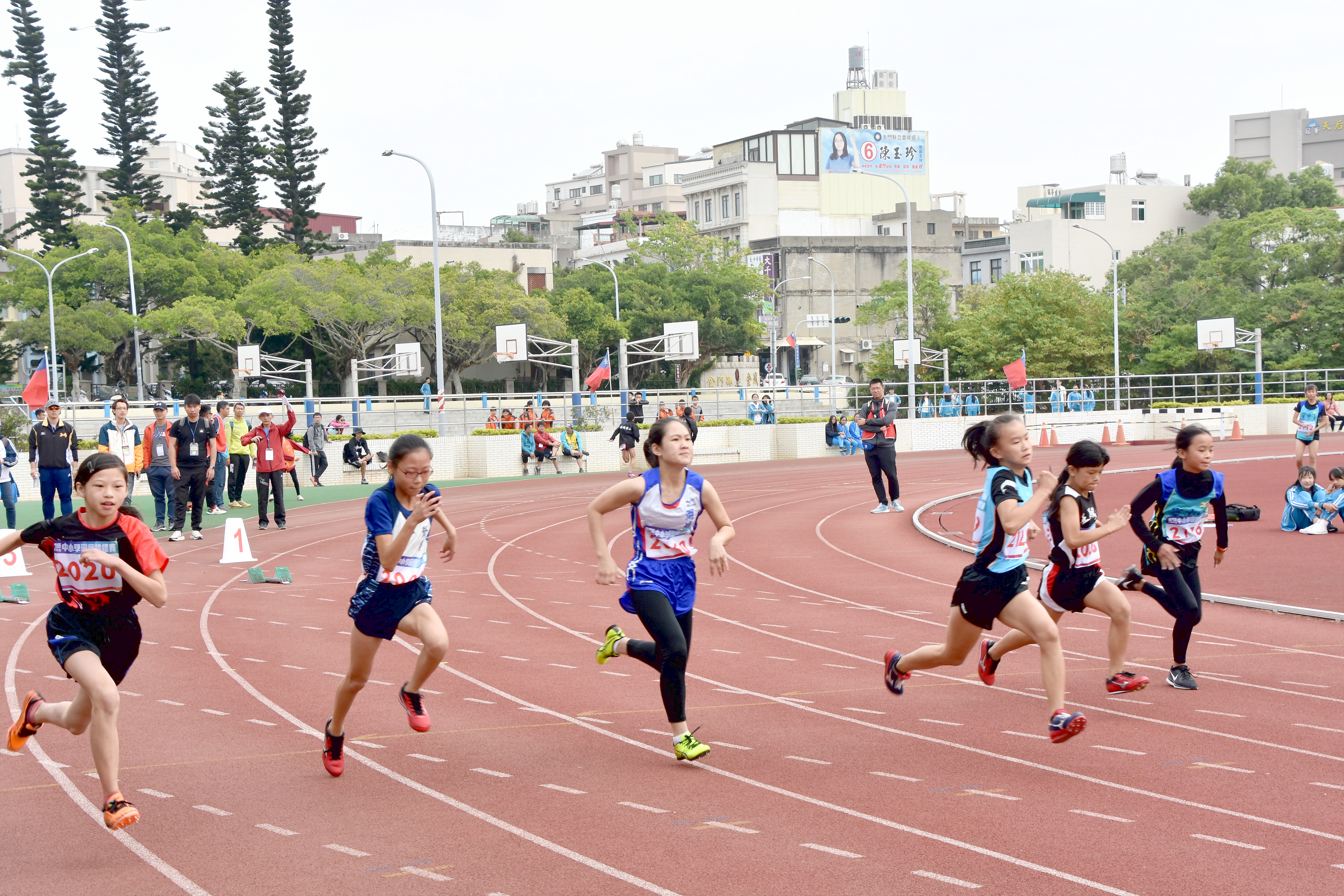 金門縣一○八學年度中小學田徑錦標賽於昨(31)日正式登場,地區中小學校共583位田徑好手,齊聚競技。昨日首日賽程,即有佳績傳出,共有6人破大會紀錄。承辦單位金城國中出版了十期賽事快報,同步更新於賽事網站(http://163.21.148.2/kmsport)供大家瀏覽。 金門縣108學年度中小學田徑錦標賽於10月31日、11月1日兩天,假金門縣立田徑場舉行。昨首日賽程,共進行10000公尺(高中女、高中男)、100公尺(國小女、國小男、國中女、國中男、高中女、高中男)、1500公尺(國中女、國中男、高中女、高中男)、400公尺(國中女、國中男、高中女、高中男)、4x100公尺接力(國小女、國小男、國中女、國中男、高中女、高中男)、跳高(國小女、高中女、高中男、國中男)、跳遠(高中男、國小男、國中女、國小女)、鉛球(國小男、高中女、國小女、高中男)、標槍(高中女)、鐵餅(高中男、國中女、國中男)等項目組別決賽。 昨日賽程中,共出現6位破大會紀錄之選手,分別為國女100公尺:金城國中李芷璇(12.86秒)、高男100公尺:金門高中陳智勇(10.71秒)、國女400公尺:金寧國中許容熙(1分01秒77)、國女400公尺:金城國中林玟(1分02秒66)、國男鐵餅:金湖國中呂育安(36.14公尺)、烈嶼國中洪振翔(33.74公尺)。 中小學田徑錦標賽首日賽程,完成決賽之項目成績(依序排名):高中職男生組:跳高:黃少均(金門高中)、陳宏祐(金門高中)、楊育杰(金門高中)、蔡何義(金門高職)。鉛球:蔡景勛(金門高中)、劉辰彥(金門高職)、陳為新(金門高中)、翁立鴻(金門高中)。鐵餅:許家興(金門高職)、楊均壕(金門高中)、許家榮(金門高職)、陳為新(金門高中)。100公尺:陳智勇(金門高中)、王功信(金門高中)、王博玄(金門高中)、王翔佶(金門高中)。400公尺:呂育昇(金門高中)、黃智暘(金門高中)、黃任謙(金門高中)、謝曜名(金門高職)。1500公尺:陳詩昊(金門高中)、謝佰虔(金門高中)、李智浩(金門高中)、何佳恩(金門高職)。10000公尺:吳家昌(金門高職)、王冠鈞(金門高中)、邱繼緯(金門高中)、李陽廷(金門高職)。高中職女生組:跳高:洪小蕙(金門高中)、楊子涵(金門高中)、楊桂茵(金門高職)、楊歆琳(金門高職)。鉛球:許以潔(金門高職)、簡庭芸(金門高中)、張韻誼(金門高中)、蔡依綺(金門高中)。標槍:黃羽婷(金門高職)、張韻誼(金門高中)、許湘玲(金門高中)、王君怡(金門高職)。100公尺:吳映萱(金門高中)、李靜思(金門高中)、楊子葳(金門高中)、林憶■(金門高職)。400公尺:黃鈺庭(金門高中)、許芙槱(金門高職)、李怡恬(金門高職)、古晏慈(金門高中)。1500公尺:鄭宇彤(金門高職)、薛兆渝(金門高中)、李顏(金門高中)、王盈幀(金門高中)。10000公尺:張家敏(金門高職)、張苡恩(金門高職)、林奕嘉(金門高中)。 國中男生組:跳高:蔡泓齊(金城國中)、洪照翔(金城國中)、許冠臣(金寧國中)、蔡鎧任(金寧國中)、蔡宗勳(金沙國中)、翁世杰(金寧國中)。鐵餅:呂育安(金湖國中)、洪振翔(烈嶼國中)、陳柏元(金城國中)、蔡世博(金寧國中)、李麒暄(金寧國中)、蔡博勝(金城國中)。100公尺:周昇明(金寧國中)、羅有誠(金湖國中)、李俊毅(金湖國中)、陳柏元(金城國中)、陳書安(金湖國中)、張用和(金沙國中)。400公尺:張士鋐(金城國中)、陳鈺富(金湖國中)、王正豪(金沙國中)、張家銘(金城國中)、周季興(金寧國中)、王群翔(金湖國中)。1500公尺:莊博凱(金湖國中)、高以諾(金湖國中)、峻宇(金寧國中)、戴宗宇(金城國中)、董宥良(金城國中)、楊柏威(金寧國中)。 國中女生組:鐵餅:李宣瑩(金湖國中)、林詠潔(烈嶼國中)、顏琦(金城國中)、林欣亞(烈嶼國中)、柯羽柔(金沙國中)、洪子媛(金城國中)。100公尺:李芷璇(金城國中)、楊佳諺(金湖國中)、洪妤宣(烈嶼國中)、張家瑜(金沙國中)、鍾馥茹(金寧國中)、張亭萱(金湖國中)。400公尺:許容熙(金寧國中)、林玟(金城國中)、李佳凌(金寧國中)、薛琪仙(金城國中)、洪子評(烈嶼國中)、楊靜雅(金寧國中)。1500公尺:洪于晴(烈嶼國中)、白慧萱(金城國中)、唐詩穎(金城國中)、陳親諭(金寧國中)、翁可盼(金寧國中)、王郁(金沙國中)。 國小女生組:跳高:蔡宜安(開瑄國小)、王萍婷(何浦國小)、陳盈希(中正國小)、洪瑞君(上岐國小)、孫子晴(西口國小)、李蓁蓁(金寧國小)、黃以樂(柏村國小)、洪敏萱(金湖國小)。鉛球:呂家歆(西口國小)、林芸萱(何浦國小)、周妍(中正國小)、辛亞芮(古城國小)、鄭又瑄(柏村國小)、商懷欣(金湖國小)、陳彥蓁(金湖國小)、黃鐙蒂(金沙國小)。100公尺:趙紫妘(金湖國小)、林純誼(多年國小)、李宥萱(賢庵國小)、黃唯珊(古城國小)、黃蔓筑(金沙國小)、洪紫逸(上岐國小)、陳庭玉(多年國小)。 國小男生組:跳遠:林唯心(金湖國小)、賈克勤(古城國小)、楊詔淳(中正國小)、鄭丞家(金寧國小)、洪紹嵩(上岐國小)、謝里宁(柏村國小)、李易宸(多年國小)、張詠鈞(述美國小)。鉛球:林宥學(中正國小)、賈克勤(古城國小)、關重釳(多年國小)、宋育榮(柏村國小)、林緯勳(金鼎國小)、李義翔(金沙國小)、張承恩(何浦國小)、洪培勛(上岐國小)。100公尺:黃柏凱(安瀾國小)、陳芓安(中正國小)、許庭碩(賢庵國小)、蔡唯晨(金鼎國小)、陳柏伸(古城國小)、王以諾(安瀾國小)、黃豐名(金寧國小)、林士愷(金鼎國小)。