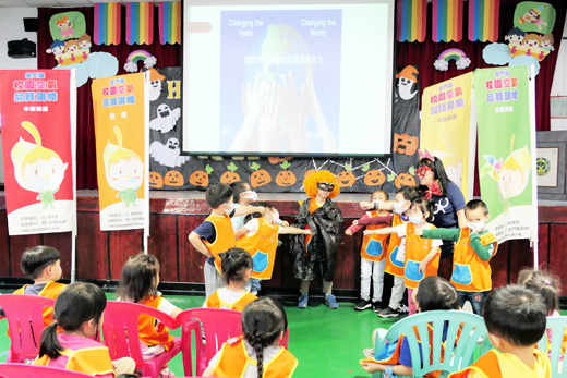 「各位鄉親請注意,霾哥來了!」古城國小附設幼兒園日前辦理全園空氣品質宣導活動「認識霾害,大家一起來」,由扮演蝴蝶結姊姊的王梅錦老師帶領幼兒園全體師生透過有趣的PPT、影片和戲劇扮演,結合環保署空氣品質宣導旗幟、標語等,進行校園空氣品質宣導活動,一起攜手守護幼童身體健康,並為空氣品質把關。 該項宣導活動係於日前假古城國小活動中心舉辦。古城國小校長楊成業及全園師生全程參與這項寓教於樂的宣導活動,由該校幼兒園中班王梅錦和陳宣妤老師帶領幼兒園全體師生進行一場空氣品質宣導戲劇和有獎徵答。充滿逗趣又誇張的空氣品質戲劇,引發小朋友的尖叫聲與熱烈的討論,歡樂的霾哥拳遊戲帶領小朋友認識空氣品質宣導旗幟,現場氣氛熱烈,深受師生喜愛。 在校園空氣品質宣導活動中,蝴蝶結姊姊以小朋友最喜歡的影片「霾哥來了」影片引起動機,淺顯的影片深受小朋友的喜愛。影片欣賞中,小朋友和蝴蝶結姊姊一搭一唱正在認識空氣品質旗幟。此時,大怪獸霾哥忽然現身,引起小朋友大聲尖叫,逗趣的霾哥和現場小朋友互動熱烈,霾哥誇張的肢體動作,深受小朋友喜愛且印象深刻,除此之外,蝴蝶結姊姊帶領小朋友認識空氣品質五種顏色旗幟與口罩的戴法。有趣的霾哥戲劇帶領師生共同認識空氣品質五種顏色旗幟代表意義,提醒幼兒園全體師生每日皆可以透過環保署的網站或APP注意空氣品質旗幟的顏色,來判斷當日空氣品質的好壞,讓全體師生共同對抗霾害。 古城國小校長楊成業表示,各種污染源增多,其中不但增加了噪音污染,也造成了空氣嚴重污染,對人體健康產生嚴重影響。每個人都希望能呼吸新鮮且乾淨的空氣,藉由校園空氣品質宣導活動「霾哥來了!麥擱來了!」瞭解空氣污染的來源,及其對身體健康的影響,師生共同攜手學習減少空氣污染的方法、保護自然環境的清新乾淨,鼓舞師生共同為營造一個良好生活環境而努力。透過每日空氣品質旗幟顏色提醒全體師生做好自我防護措施,以降低霾害及空氣品質污染所造成的風險,維護身體的健康。
