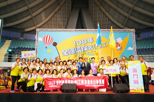 行政院環保署於10月26日在雲林縣立體育館盛大舉辦的「108年全國環保志(義)工群英會」,金門縣由40名環保志工精英組隊,由環保局楊建立局長親自領軍參賽,在前日傳回好消息,本縣環保志工在緊張刺激且熱情萬分的比賽過程中,於「環保啦啦隊」、「環保金頭腦」、「環境保衛戰」及「資源分類王」等4項皆榮獲優勝的殊榮,為金門縣增添不少光彩,大大打響知名度。 環保局表示,環保志工們平常都分散在金門各地為環境默默地付出跟耕耘努力,赴台為金門取得佳績時則同心共體,是最珍貴的夥伴。 本年度「全國環保志(義)工群英會」同樣由來自全台22縣市超過2,000位環保志(義)工歡聚一堂,比賽開始前,環保署張子敬亦特別到場給予在場的所有環保志工們勉勵,張子敬表示,環保志工有環境教育、節能減碳、環境綠化、河川巡守、環境清掃、資源回收、綠色生活及消費等7大領域,環境保護是全球性議題,台灣身為地球村的一員,更不能置身事外,愈來愈多人自發性身體力行並投身環保志工行列。 環保局表示,每年環保志(義)工群英會辦理目的,為凝聚環保志工向心力並展現活力,以寓教於樂的方式,讓大家與夥伴攜手合作完成各項競賽,展現出志工的環保知識與技能及團隊默契,並從中獲取正確的環境相關知識,進而學以致用,將環保落實於日常生活,讓環境保護與環境教育達到知行合一的效果。未來更歡迎本縣有成立環保志工隊之社區共同參賽,一同活絡本縣環保志工們的情誼,並為落實環境保護共盡一份心力,讓環保精神發揚光大。