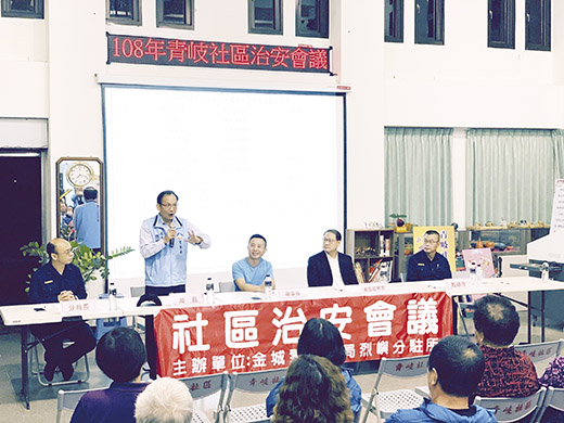 金門縣警察局金城分局烈嶼分駐所與烈嶼鄉青岐社區發展協會,於日昨晚間在烈嶼鄉青岐社區活動中心召開「108年社區治安會議」,金門縣警察局局長張國雄、金門地檢署主任檢察官吳文城親自出席社區治安會議,並傾聽民眾對於轄內的治安交通等建言,希望讓各項反賄選、以及治安、交通與為民服務工作做得更完滿。 社區治安會議由青岐社區發展協會理事長洪長享主持,金門地檢署主任檢察官吳文城,縣警察局局長張國雄也率金城分局長李益杰等相關科室主管出席,並有多位青岐社區志工隊隊員及青岐村村民等約七十人參加。 會議首先由主持人理事長洪長享介紹本次會議參加來賓,隨後詳細介紹青岐村社區發展協會的成立歷史,接著由縣警局局長張國雄致詞,他表示,到金門服務6個月期間,發現金門不管治安或交通方面都非常良好,但有鑑於毒品或職業賭場等犯罪無國界之分,縣民千萬不能以「離島無戰事」等閒視之。他說,雖然警力有限,但是民力無窮,因此唯有每位縣民當作「行動監視器」,做警察局的靠山,才能做到「好山、好水、好治安」的金門。 他並強調,「治安座談會」是一個平台,讓民眾了解與警察是夥伴關係,發掘治安、交通問題所在,社區治安需要警民合作,唯有警民互助共同打擊犯罪,治安才會越來越好,這也是召開社區治安會議的重點,未來希望能夠警方與民眾一起為金門的治安努力,攜手打造治安穩定、交通順暢的宜居城市。 地檢署主任檢察官吳文城針對明(109)年1月11日選舉投票做反賄選相關宣導,由於各政黨競爭日益白熱化,使得選情情勢變數增加,更添加選舉的緊張氛圍,為免參選人有鋌而走險違反選罷法的情況產生,他強調,地檢署針對擁有地方影響力的各宗親將會加強反賄選宣導行動,並將持續推行因應金門轄區特色之檢舉賄選專用QR CODE,以落實保護檢舉人,並鼓勵民眾勇於提出檢舉,讓金門地檢署的反賄選宣導更能提升效益,以營造全民反賄氛圍,提倡正向、健康之選舉文化。 在進行意見交流時,與會中民眾熱烈反應,對於轄內的周邊交通路況、守望相助隊的成立及治安等問題,反應熱烈,也由現場與會各單位代表一一回覆,其中有關道路工程等意見將轉達縣府觀光處來會勘研議及參考。 在意見交流後,也由警察局少年隊針對兒少保護實施宣導;烈嶼消防分隊以居家防災作為宣導;縣警局刑警大隊則特別呼籲民眾在接到類似詐騙電話時請撥打165反詐騙專線查證;而交通隊則告知民眾酒後駕車新法上路民眾應注意事項,警方亦會持續加強取締,以維護行車安全及減少交通事故發生;另縣政府財政處亦派員宣導地區民眾於水頭商港管制區內依關稅法核准設立之免稅商店購買免稅菸酒品只能供自用,不能移作它途使用,或是交寄至台灣本島,否則恐有觸法受罰之虞。 縣警局強調,社區治安座談會民眾踴躍參與,透過宣導也將許多警政犯罪預防資訊傳達給里民知曉,唯有全民一起來,治安及交通才會好;「治安座談會」是一個平台,讓民眾了解與警察是夥伴關係,發掘治安、交通問題所在,社區治安需要警民合作,唯有警民互助共同打擊犯罪,治安才會越來越好,這也是警方召開社區治安會議的重點。