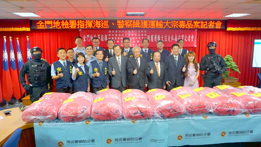 金門史上最大量的毒品運輸案,在金門地檢署指揮海巡及警察機關等單位共同協力偵辦下,經過數月努力後,金門地檢署於昨(十五)日召開記者會宣布偵破,除查扣淨重達四百九十八點九九公斤的第四級毒品「麻黃鹼」外,同時也緝獲以陳姓嫌犯為首的運輸毒品集團成員計五人。全案已在十月八日偵結起訴,並經聲請法院裁准羈押禁見。 這起案件起源於七月底時,金門查緝隊在金湖鎮料羅淺水碼頭,起獲一起佯裝貨車搬運傢俱,並將這批淨重四百九十八點九九公斤的毒品「麻黃鹼」夾藏在車上已釘實彈簧床板中。配合臺灣高等檢察署執行第四波安居緝毒專案,海巡署偵防分署金門查緝隊執行緝毒專案,在福建金門地方檢察署檢察官席時英指揮偵辦下,偕同彰化查緝隊、金馬澎分署第九岸巡隊、金門縣警察局金湖分局、刑事警察局偵查第六大隊第五偵查隊等單位展開抽絲剝繭的搜索偵查。 金門地檢署表示,該案為金門查緝隊報請指揮,經研案分析後,檢察長洪家原除了召開專案會議外,並邀集轄區警巡單位合組團隊,先於七月二十八日時查獲偽裝成貨品準備運往台灣的毒品,並查獲登記寄貨且準備逃離的鄭姓寄貨人,隨後積極溯源,並依出海登記等資料分析及數位鑑識等科技偵查,並結合在臺友軍,陸續搜索、拘提同行共犯陳姓、許姓、廖姓,以及協助租車及訂製床板的蔡姓嫌犯到案。 據了解,這批毒品運送集團是以台幣八十萬的代價,在七月二十四日時,駕駛航運公司船舶前往大陸地區福建省大嶝海域,接駁偽裝成飼料袋「麻黃鹼」共二十袋,將其藏放在船舶密艙中,運回金門後夾藏在訂製之床板內,於同月二十八日打算以小貨車載往淺水碼頭,企圖透過國內航運,運往臺灣臺北港後,製成甲基安非他命藉此販售牟利。而檢方表示,這批「麻黃鹼」經過精製後,估計可製造甲基安非他命約四百公斤,約供八百萬人次吸食。 昨日的破案記者會上,法務部常務次長張斗輝、臺灣高等檢察署檢察長王添盛、福建高等檢察署金門檢察分署檢察長林邦樑、海洋委員會海巡署偵防分署分署長張忠龍、金馬澎分署副分署長蔡茂珵、金門縣警察局副局長黃柏燊等人出席,並由常務次長、高檢署檢察長、福建高分檢檢察長致贈慰勞品予檢、警、海巡單位代表,以慰勉執法單位人員的辛勞。 法務部張常務次長張斗輝表示,監獄收容人當中多數與毒品案有關,顯示毒品危害甚重,行政院於一○六年制訂新世代反毒行動綱領後各單位均積極緝毒、防毒,近年來施用毒品新生人口數已有下降趨勢,法務部也積極修定相關法規,包括增加旅館通報、反毒宣導責任;加速尿液、毒品檢驗、銷毀流程等。另依法務部法醫研究所報告,一○七年因施用新興毒品死亡人數四十五人,較上一年死亡人數的一百人,下降了百分之五十五,顯示防制毒品的成效,他也肯定各單位辦案團隊嚴守偵查不公開原則,積極向上溯源查緝共犯到案。 高檢署檢察長王添盛則說,行政院指定由高檢署負責統合緝毒六大系統,包括檢察、警察、調查、海巡、憲兵及關務,在過去四波的「安居緝毒專案」執行下已獲致亮眼的成效,同時還更積極的與其他國際緝毒單位交流、互換情資,希望截毒於海上、緝毒於邊境,自今年三月間起,高檢署即率團前往菲、越、泰多國,日前又前往澳洲,與各國緝毒單位建立緝毒合作模式,對於此次毒品案能夠以團隊辦案,並利用科技偵查溯源斷根,成功追緝共犯,他在昨日記者會中也予以嘉勉。 金門位於兩岸最前線,地理位置特殊又有「小額貿易」之習性,這也讓有心人利用作為中轉私運管制物品的通道。諸如此次的毒品運輸案件外,其他如防疫食安案件等均有發生,金門地檢署年初指揮海巡查獲重達一點一噸帶殼牡蠣,故而如何不擾民下強化境檢,並以團隊配合科技偵查就至為重要。毒品案向來在金門新收案中均排一、二,除緝毒外,並應作好防毒、拒毒、戒毒工作,以達全面反毒之目標。 金門地檢署說,將會持續利用各項活動及宣導機會,提升全民反毒意識,減少毒品危害問題,並積極向高檢署、法務部爭取經費,設置科技偵查指揮中心、數位採證室,安裝團隊辦案及通訊軟體之鑑識程式,為落實「新世代反毒策略」做好準備。