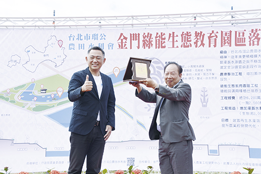 縣長楊鎮浯昨在「金門綠能生態教育園區」落成典禮中,頒授台北市瑠公農田水利會會長林濟民榮譽縣民證,感謝他長年來協助金門地區改善農業供水的卓著貢獻,也感恩他對這塊土地的付出,更期待他在成為金門人後,繼續和鄉親攜手共同打拚,讓金門這塊土地更美好。 縣府民政處指出,「榮譽縣民證」的頒授主要是為表揚對縣政興革、國民外交、推動社會公益活動、地方建設等具有貢獻之人士,除了藉以表達崇敬及感念之意,也有其最高榮譽及指標性意義,本次獲頒授證者為台北市瑠公農田水利會會長林濟民。 民政處表示,林濟民自民國101年10月1日接任台北市瑠公農田水利會會長以來,即承續台北市瑠公農田水利會發達農田水利事業,為振興國家農業盡心盡力,並致力社會服務工作以造福桑梓為宗旨而努力不懈。 其中,相當重要的一項持續工作即是協助金門地區引進節水灌溉技術及提升水資源使用效率,改善當地農業供水狀況。民國97年至108年,台北市瑠公農田水利會對金門地區相關計畫共28件,總計協助金門地區經費計新台幣10,765.5萬元。對金門地區農業灌溉貢獻相關事蹟簡要說明如下: 1.民國97年開始,林濟民以瑠公農田水利會總幹事之職務,主導進行協助辦理金門地區農戶更新灌溉設施補助計畫,以及陸續調查試驗瞭解金門地區當地作物灌溉需求水量。 2.林濟民接任會長後,大力推動認養補助金門地區旱作灌溉設施,至103年調查小型調蓄設施於缺水時期可循環利用灌溉次數,與作物期作用水量;並研擬適合作物之施灌型式以及其生理用水時期,協助設置調蓄設施,造福金門地區農民。 3.106年主導辦理金門地區農業灌溉水源規劃建置。第一期重點為改善農塘的取水口與溢流口高度,增加蓄水容量。今年持續推動官嶼農業灌溉示範區工程第二期綠能生態教育園區工程,造福金門地區鄉親,對本縣水利工程貢獻良多。