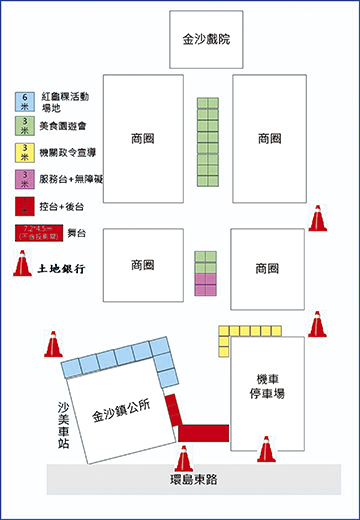 2019金沙鎮「高粱老街風獅爺文化季」即將登場,今年活動地點為金沙戲院前和金沙鎮公所周邊,考量人車安全,便利活動之進行,明天及後天活動兩天活動現場管制車輛進入,並分別規劃汽、機車停車場,已商請金湖分局協助交通管制,敬請鄉親前往參加活動時多共乘或利用大眾運輸工具,並依照現場員警及工作人員之指揮,不便之處敬請見諒。 金沙鎮公所表示,今年活動移至金沙商圈(金沙戲院及金沙鎮公所周邊)辦理,為利與會活動之人車安全和便利活動之進行,將管制車輛進出會場,除分別於會場入口設置五處「車輛改道」告示,配合交通動線規劃汽、機車停車場,屆時敬請鄉親多加配合,並依照工作人員和員警之指示。 其中,會場進行管制,禁止車輛進入,分別於環島東路一段(活動舞台前)、三民路(紅龜粿DIY活動入口處)、國中路及三民路交叉路口、國中路及博愛街交叉路口、三民路土地銀行,設置「車輛請改道」告示,並編列交通組工作人員作指引。 汽車停車方面,榮光新村(天摩山餐廳)、裕豐家具行斜對面、大菜宅空地,川德宮、慈德宮空地。而國中路及榮湖周圍採單向停車。 機車停放位置,於(汶沙測段1519地號)環島東路活動舞台和7-11間空地停放,並於地面拉紅線區隔停車,敬請鄉親配合。 金沙鎮公所也指出,今年活動舞台及系列活動規劃在金沙商圈及金沙鎮公所周邊辦理,公所於今年4月先與沙美商圈召開協調會議,討論商家於活動兩日配合移動車輛之事宜,感謝金沙商圈居民之配合,也呼籲與會鄉親,務必遵守現場員警及工作人員之交通疏導,也鼓勵鄉親多利用大眾運輸或共乘前往會場,首日晚會散場有免費直達接駁車服務,鄉親可多加利用。