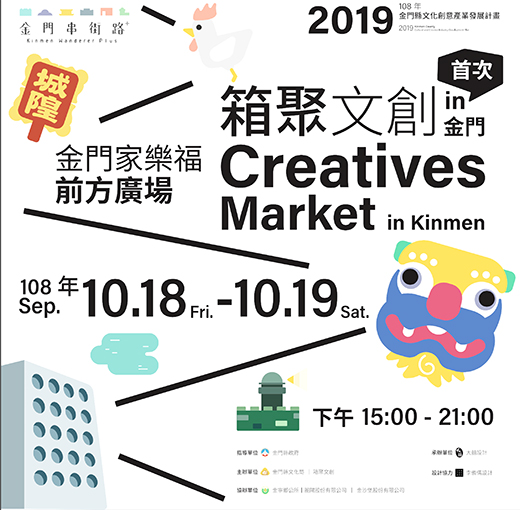 金門縣文化局為鼓勵地方業者及有志青年投入文化創意產業,藉由文創商品設計開發、文創及業者輔導等面向為基礎,結合文創市集,推廣金門文化創意產業及觀光行銷,鼓勵扶植地區文創產業發展,於今日、明日下午3點至晚間9點,在金門家樂福前廣場(892 金門縣金寧鄉伯玉路二段223號)舉辦箱聚文創市集。本次共計有15個攤位,歡迎鄉親、遊客到場共襄盛舉。 箱聚文創市集這次有在地小農、手工文創商品和將傳統文化賦予新生命的商家,用不同類別的創意,嘗試不同的可能。本次市集在地小農商家有「金門青農聯誼會」販售蜂蜜;手工文創商品有「好金門在地誌」、「金門手工筆」、「Rosweet studio工藝工作室」、「胡璉研究中心」、「一把蔥雜燴工作室」、「浯作工作室」;在地特產有「協發行泡菜」、「華博向大大」、「高坑牛肉乾」、「禾瑾設計」、「源記食堂」、「K Beer金門精釀」、「嘉年華冰果室」。 「盼望聚集更多好的事物,在金門與人產生美的連結」,想了解更多的金門在地的無限創意,主辦單位歡迎帶著您的好奇心,共享箱聚文創市集。
