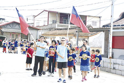 時值光輝的十月,日曆上「今日應懸掛國旗」的字樣已難見到,在國慶日這樣的日子裡,一般學校有怎樣的慶祝活動?賢庵國小垵湖分校全校師生昨日就拿著國旗在后湖的村落裡繞行了一圈,讓小朋友認識代表國家的國旗及國歌,以及國慶日的意義。 垵湖分校主任薛素瓊指出,隨著集合升降旗的減少,許多新生代的學生甚至不清楚國歌該怎麼唱。垵湖分校舉行在后湖村落遊行的活動已有數年,深覺是個值得延續的活動,今年特別請學校老師買了小國旗,讓小朋友在日後舉辦這項活動時使用。 只見小朋友舉著買來的或是自己手繪的國旗,跟隨著鑼鼓鳴響及國歌的放送,在村落裡繞行,一邊喊著「中華民國萬歲!中華民國萬歲!」國家的意識藉由參與的活動慢慢在心裡萌芽,手中的國旗也揮舞得賣力起來。