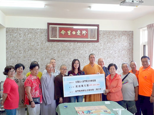 金門海印寺昨(九)日捐新台幣二十萬元給社團法人金門縣生命線協會,由理事長許雪芳代表接受,她誠摯感恩海印寺推動公益的努力,敬佩海印寺住持性海法師與董監事等人對社會無私奉獻,讓善的力量傳遞到金門每一個角落! 海印寺是佛教聖地及地區信仰中心,地區鄉親在過年過節都會虔誠上山祈福,更是鄉親身心靈洗滌的場域,亦秉持關懷社會弱勢族群之慈悲心。海印寺有見於人們對生命之探索與疑惑,常常尋求金門生命線協助,因此,海印寺住持性海法師昨天拜會金門生命線,希望可以幫助需要幫助的人。 海印寺住持性海法師帶領湛因法師、真化師父與清安師父、楊清國、陳忠飛、陳國才、許明娥、吳素蘭、許秀治、張含麗、唐敏修及陳文經等十三名董監事一行,以拋磚引玉精神捐贈善款二十萬予金門縣生命線,由生命線理事長許雪芳代表接受及致贈感謝狀。 性海法師表示,這股善的力量是來自四方善男信女的捐款,海印寺謹慎善用每一位人間菩薩的捐款,將所有人愛心化為大愛,幫助真正需要的人。 金門生命線在理事長許雪芳奔波下,將在109年承辦全國生命線年會,屆時將會有來自全國各生命線的協談志工老師蒞臨金門,海印寺住持性海師父為感念全國勞苦功高的協談志工老師們,每天都要接收來自人間的疾苦心聲,往往一通電話即可挽回寶貴生命,挽救一個家庭,生命線本於博愛精神為人間菩薩橋樑,認為這條線真的非常重要,海印寺以實際愛心行動,支持金門縣生命線服務社會公益精神。 許雪芳表示,近年來,海印寺住持性海師父抱持入世、服務社會精神,積極帶領俗家信眾深入金門每一角落,秉持學習讚嘆,學習功德,了解需要扶助弱勢團體,積極熱心公益活動,深獲地區鄉親讚許。 許雪芳也表示,金門縣生命協會成立至今已五年了,非常感謝默默支持生命線協會的善心人士與機關團體熱捐,更希望各界繼續全力護持1995,協助站在十字路口徬徨的人,讓金門生命線協會可以永續經營。 許雪芳指出,生命線首度明年將在金門舉辦全國年會主要目的是藉由會議認識來自全台不同縣市近千名的志工老師,交換推行自殺防治工作之心得與經驗,以擴展個人視野與見解,提高對於自殺防治工作之共識度,並邀請專業學者辦理工作坊,提升志工老師們的專業素質與涵養,是深具意義的活動,期盼金門各界共襄盛舉,竭誠歡迎點亮生命之光,傳遞愛的火花。