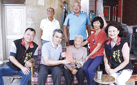 「平安有福」九九重陽節屆臨,金沙鎮公所舉辦重陽敬老活動,除了進香活動,也致贈轄內65歲以上長者重陽敬老酒。並由鎮長吳有家、代表張成爵、呂寶玉等代表,走訪轄內各里探視百歲人瑞並一一贈禮,獻上問候關懷,也學習長輩們的生活智慧,一行人的到訪也讓阿公阿嬤滿心歡喜,連聲道謝,場面相當溫馨。 家有一老如有一寶!九九重陽節將屆,金沙鎮公所舉辦重陽敬老活動,除了致贈敬老酒給設籍金沙鎮滿一年之65歲以上長者,也規劃百歲人瑞贈禮及進香活動。根據金沙鎮公所統計,鎮內目前滿百歲及逾百歲之人瑞共計有10人,包括,陳蔡歐、陳言螺、李在、歐陽李束嬌、黃莊淑靜、何玉霜、張寶治、張林瑞凉、陳淮欉、楊螺等,經過訪視及和家屬聯繫,於10月3日一一前往探視,關心生活起居、健康狀況,並致贈重陽敬老禮金。 鎮長吳有家、鎮代表張成爵、鎮代表呂寶玉等一行人聯袂探視鎮轄百歲長者,阿公阿嬤見到一行人的到訪都十分歡喜,連聲謝道「感謝您的到訪」;對於收到紅包更連忙推辭,直說「真不好意思」。其中,最高齡的何玉霜開心和吳鎮長等人寒暄,感謝大家的關心;識字的張寶治現場以閩南語念起紅包袋上的題字「平安有福」;斗門的長者陳淮欉自行簽收賀禮,讓一行人深感佩服。西園的黃莊淑靜也在里長黃志明、兒子和媳婦的陪伴下,分享她日常飲食;家住洋山的李在也連聲道謝,讓大家見到長者們的謙遜好禮和生活智慧。 而今年金沙鎮重陽敬老進香活動,於5日登場,近500人分乘13台車,前往金城天后宮、豐蓮山牧馬候祠、李光前將軍廟、雙鯉古地(關帝廟)古寧頭和平園區等進香祈福和參觀,中午並餐會聯誼。