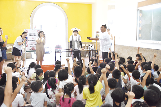 世界動物日,金門縣畜產試驗所前進校園宣導,並提供了斑龜、紅耳龜、兔子等供學生進行餵養體驗,園內遊園專用的兒童電動超跑也開到現場,讓學童為之瘋狂。金門縣野生動物救援暨保育協會也以正收容救治的保育類金龜為例告訴學童,外來種、棲地分佈等環境失衡問題;也說明金龜在金門縣政府及協會持續投入資源及救治下,已恢復健康中,籲學童建立愛護動物及保護棲地環境,打造一個人類和動物共好的快樂天堂。 金門縣畜試所響應10月4日世界動物日,獲邀到中正國小宣導,工作人員化身兔子姊姊、梅花鹿哥哥等角色與小朋友互動。現場並提供了金龜、斑龜、紅耳龜、兔子等可愛動物,供小朋友近距離餵養體驗,學童也從家裡帶來蚱蜢、螃蟹、貓咪及魚等寵物。兔子姊姊、梅花鹿哥哥藉由動物們的生活環境、習性以及辨別等,籲請小朋友,愛牠就要保護牠,領養不棄養,並且要從生活中落實環境保育,減少海洋垃圾等,建立愛護、尊重動物的觀念。除了可愛動物吸引小朋友的目光外,畜試所也將遊園專用的兒童電動超跑開到現場,讓學子為之瘋狂,兩百多位師生共度溫馨活潑的上午,寓教於樂。 而值得一提的是,金門縣野生動物救援暨保育協會亦提供了一隻受過傷,現正收容救治的保育類金龜到場協助宣導,並告訴學童,該烏龜係因外來種影響棲地分佈而被迫生存在較不良的環境,顯示出失衡的問題。對此,縣政府及協會已持續投入資源掌握及救治,目前金龜已恢復健康中。畜試所也表示,縣府及該協會目前致力於各類稀少物種的保種復育工作。畜試所於活動中也提供紅耳龜(巴西龜,外來種)、斑龜及共域雜交的烏龜等,藉由其特徵教導小朋友做基本的判斷與認識,期能將正確保育觀念自校園扎根,讓學童從小培養生命教育的觀念。