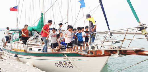 述美校友投身遊艇發展,日前首航金門,並在十月六日抵金,同時於昨(七)日邀請母校述美國小以及金沙國中的學弟妹們參訪,為其解說,希望身為島嶼子弟的金門年輕人,能對遊艇發展有更進一步的認識。而盛新此行,也表示會向縣府提出建言,希望能有機會促成國際級的台金海峽盃帆船賽事,讓金門的國際能見度更上一層樓。 於台灣擔任遊艇教練的紅牡蠣遊艇開發公司負責人盛新,日前駕駛兩艘重型動力帆船駛抵金門,目前停泊於水頭港區內,而述美國小以及金沙國中的學子們,是在昨日下午一時還有三時左右,先後前往帆船停靠處參觀,並在盛新的詳細解說下,對帆船遊艇有了更深入的認識與理解。 據了解盛新為金沙鎮青嶼人士,畢業於述美國小以及金沙國中,此行有機會駕駛帆船來金,也希望能讓母校的學弟妹們多認識船舶。述美國小老師表示,盛新的帆船基地在北台灣,此次是從基隆八斗子漁港出發,同時也是金門首次有帆船入港,他感謝學長為了回饋學弟妹,特別邀請學生到場參觀,並且還熱情的解說。 因為朋友買船需要水手,盛新擔任該職務後愛上帆船運動,目前擁有英國RYA動力船國際證照,同時也擔任帆船教練的職務,他表示,台陸雙方已經舉辦過七屆的海峽盃帆船賽,他自己也曾經參加過四屆的海峽盃,由台灣開至廈門,只是不曾開抵過金門,他認為台灣航行到金門的這段航線是很不錯的,自己曾經參與過在春季舉行的台琉杯帆船賽,因此也認為可以安排在每年十月東北季風開始之際來舉辦台金橫渡的帆船比賽。 盛新認為,既然五緣灣碼頭可以,金門也一定有條件可以成功;而他也希望家鄉能有國際級的遊艇碼頭,並能在金門舉辦國際級賽事。盛新表示,他見證了五緣灣十多年前的荒蕪,到目前已經是國際級的遊艇碼頭,這段從無到有的發展軌跡,因此他相信金門也有這樣的條件,並也一定有機會可以達成的。 遊艇碼頭目前只聞樓梯響,但盛新說,可以藉由活動的舉辦來推動碼頭的興建,初期只要能有停泊補給的港口就可以舉辦帆船賽事。且跨海的賽事,時間較短,對於許多業餘選手是有吸引力的,若能舉辦國際級賽事,吸引到各國籍遊艇來金比賽,屆時各國國旗飄揚,對金門形象有一定提升。
