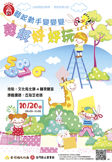金門縣文化局為推廣閱讀,辦理「兒童閱讀遊樂園」二場次:「剪紙好好玩~藝起動手變變變」閱讀推廣活動,於10月20日(星期日)上午、下午場分別於文化局北棟四樓視聽室及金湖鎮圖書館登場。並於10月9日(星期三)起圖書館上班時間(星期二至星期日上午9:00至17:30)開放報名,每梯次各限額20組家庭,每人限報一梯,不得重複報名。活動報名專線:金門縣立圖書館082-323169轉172或金湖鎮圖書館082-33469。 文化局歡迎對剪紙有興趣的讀者報名參加活動。「兒童閱讀遊樂園:剪紙好好玩~藝起動手變變變」閱讀推廣活動,共計兩場,第一場10月20日上午九時至十二時於文化局北棟四樓視聽室,第二場10月20日下午二時至五時於金湖鎮圖書館。 剪紙是中國最古老的民間藝術之一,兒童可以利用一張彩紙、一把剪刀玩出創意。本次活動將邀請丘琁芝老師指導,琁芝老師表示剪紙是每個人內在心靈圖像的再現,安徒生說剪紙是一切創作的開始,剪紙的單純、剪紙的美、剪紙的趣味就從一張紙與一把剪刀開始。本課程讓孩子體驗專注、剪紙的趣味,帶小朋友開始屬於自己的無限想像與創意。 文化局指出人類有五種不同的感官,視覺、聽覺、嗅覺、味覺、觸覺,五感體驗是調動人的認知和溝通的過程。而剪紙活動不僅可以鍛鍊孩子的手部肌肉,還有益於孩子的手眼協調和專注力培養,更可以培養他們無限的想像力。金門縣立圖書館推廣閱讀,藉由此項活動,鼓勵孩子探索世界,多重感官刺激,為孩子的大腦發展灌注所需的營養。歡迎親子一起共同參與,也歡迎大家多到圖書館借書閱讀。活動詳情請上金門閱讀島FB。