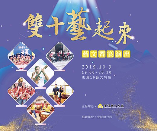 雙十節連假即將來臨,文化局將於9日(星期三)晚間7時起在後浦十六藝文特區舉辦「雙十藝起來│藝文饗宴演出」活動,由在地藝文團隊及街頭藝人以烏克麗麗、吉他、木箱鼓、大提琴、國樂團、太鼓、薩克斯風及舞蹈等方式演出,內容精彩可期,文化局邀請大家一起來慶祝國慶。 此藝文饗宴演出以多元形式呈現,邀請六組團隊演出,分別為許翼騰(主唱&烏克麗麗手)、陳樂鐸(吉他手)、陳慶寧(木箱鼓手)三人演出《Angel Life》(烏克麗麗演奏自創曲)、《說好不哭》、《彈琴歌》;陳怡潔(大提琴)、陳樂鐸(吉他)演出《Do you hear the people sing》、《聽見下雨的聲音》、《Photograph》;周聖文(團長)、陳映蓉(笛)、許曉緣(揚琴)、張鳳宜(胡琴)、葉雅妮、李宛珊(大提琴)、王晢剛(擊樂)及薛至宏所組成「金門愛樂」演出《步步高》、《夜來香》、《I DO》等曲目,寧鼓團(太鼓)演出《乘風破浪》,謝華昌、胡家華、鍾妍組成「塔山電廠薩克斯風社」演出《心花開》、《淚光閃閃》、《愛的禮物》;許芷晴、賴妍蓁、吳沁玲、鄭若亞、馬紹芸、楊欣慈、蔡旻潔所組成「Candy金門小女孩」演出《Candy來報到》、《雙十藝起來》。 在地藝文團隊及街頭藝人人才齊聚一堂。歡迎大家來到後浦十六藝文特區,一起慶雙十!