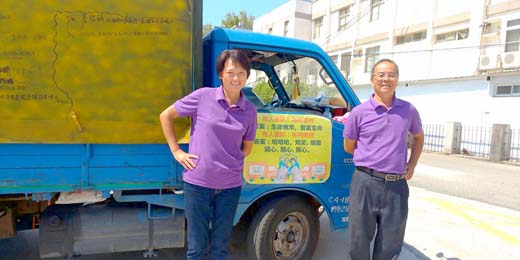 環島饅頭林波、靳寶儀伉儷將於9月29日星期日,假金門家扶中心大門口,製作手工黑糖饅頭,並將當日義賣所得,全數捐給金門家扶中心,協助家扶中心興建兒童扶幼館,讓金門兒童福利工作可以和台灣一樣,提升及進入另一個弱勢兒童服務工作的里程碑。 29日活動當天上午,環島饅頭林波伉儷的饅頭發財車,一早即將開到家扶中心,即刻備料開始製作手工的黑糖饅頭和蒸熟,中午十二時開始即可供應鄉親大眾,一方面可順手做愛心,另一方面又可品嚐到既可口又天然的黑糖饅頭。 林波、靳寶儀伉儷駕著生產饅頭的小發財車「凸」遍全台灣,今年是饅頭車連續第五年出行,已跑遍全台灣各鄉鎮無數次,連離島澎湖都去過兩次,但今年則是饅頭車第一次登陸金門,為金門地區學校及社福單位,奉獻出一己之力,來貢獻他們的愛心。 環島饅頭林波伉儷表示,四年前因某些事情因緣際會之故,改變了他們的人生觀重新體會人生的真諦,因此夫婦二人決定在主要工作完成後,每年撥個半年的時間,快樂行腳到各鄉鎮,環島關懷自己住的土地,並且沿途在各收容機構、社福單位教導大家親手做幸福饅頭,吃得健康吃得快樂。近期更深入偏遠鄉鎮學校或各類社區協會,指導學童及民眾做出健康又Q彈的饅頭,除親手做健康饅頭外,並推廣安全食物的概念。 金門家扶中心主任李桂平表示,環島饅頭林波、靳寶儀伉儷年輕時是在台南地區知名的糕餅店擔任大師傅,該家店家的蜂蜜生日蛋糕遠近馳名,就是出自於林波之手,過生日時有此蛋糕慶生,對於壽星來說就是一件非常滿足的事。林波伉儷後來創業經營粽子工廠,從四年前的端午節後開始,粽子工廠就暫時打烊,夫婦二人開著發財車開始「環島做饅頭、愛心送幸福」的行動,每年都出發開往各地不同的據點,整個台灣跑透透,將愛心散播在各個偏鄉和弱勢族群身上。 林波夫婦一路開著小貨車前行,無論食、衣、住、行都在車上,他們為了不造成他人困擾,洗澡睡覺有時都在貨車上解決,雖然辛苦但樂在其中。問他們為何不願住民宿或飯店,他們說這樣更接近在地人群,而且民宿再怎麼便宜,兩夫婦也要花千元住宿費,剛好可購買兩包麵粉,讓更多人可以分享到環島饅頭的喜悅。目前環島饅頭車晚上則駐泊在料羅順濟宮前廣場,林波夫婦以車為家怡然自得。 今年連續第五年的環島做公益活動,從7月4日從台南出發一路北上到基隆,沿途邊走邊安排公益行程造訪各學校及機構。9月5日到達人生地不熟的金門後,即刻安排公益行程,從第一個多年國小的據點開始,烈嶼鄉三個國小也陸續完成服務,緊接著大同之家及其他社福單位、國小和各類社區協會,也都有環島饅頭的足跡。到日前為止,今年已服務到79個據點,四年下來已累積到過282個據點。服務過程皆為自己出資,讓活動參與者充滿活動學習的快樂。林波、靳寶儀伉儷散播歡樂散播愛,以每一次小小的行動累積無數的大愛,陪伴弱勢族群或孩童,讓社會更祥和樂利。 金門家扶中心表示,9月29日當天早上環島饅頭林波夫婦就開始製作黑糖手工饅頭,每袋六粒一百元的公益價,全數所得捐助給金門家扶中心做為兒童扶幼館的建館專款。欲品嘗天然好吃不添加香料和防腐劑的黑糖饅頭,又可隨手做公益的鄉親們,可事先預約家扶中心電話326139找林小姐登記,或者是當日中午十二點以後到五點前來家扶中心認購。為環保考量,當日可攜帶環保盒具來裝饅頭,請一起順手做環保來裝好吃的黑糖饅頭。