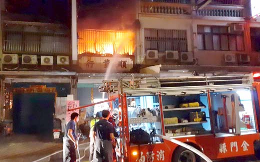 金城鎮民權路一處民宅於25日凌晨發生火警,金門縣消防局指揮中心派遣金城、金寧分隊出動各式消防車及救護車10輛,動員消防及義消人員計30名前往搶救,半小時內即將火勢完全撲滅,並無人員傷亡,詳細起火原因,將由消防局火災調查科進行後續鑑定。 金門縣消防局救災救護指揮中心是於25日凌晨1時42分接獲民眾報案,指稱位於金城鎮民權路某棟住宅發生火警,現場火勢猛烈,大量濃煙及火舌不斷由現場竄出,情況十分危急。指揮中心立即派遣金城、金寧分隊出動救災車組前往搶救,並由轄區第一大隊大隊長陳國瑋擔任指揮官,消防局長翁宗堯接獲通知後亦立即趕往現場坐鎮指揮。 由於火災現場為3層樓RC構造建築物,火點位於2樓,建築物內因置放大量紙箱、雜物、高粱酒及易燃物等,現場火載量極大,增加消防搶救之困難度,且火勢在消防人員抵達前即迅速全面燃燒,並有向旁邊住宅延燒的危險,消防人員立即在現場佈署二條水線進入屋內進行人命搜救及滅火攻擊,火勢在消防力強力介入後,約在凌晨2時獲得控制,並於凌晨2時14分完全熄滅,消防人員在進行殘火處理時也同步清查隔壁建築受到波及情形,並無人員傷亡,合計燒毀面積約60平方公尺,損失初估新台幣50萬元,詳細起火原因,將由消防局火災調查科進行後續鑑定。 此次火警在第一大隊大隊長陳國瑋率金城消防分隊全體人員,在第一時間高效率之應變作為下,火勢在最短時間內撲滅,有效防止危害擴大。 消防局局長翁宗堯也呼籲民眾家中勿堆放雜物,並應經常清理,以避免當發生意外災害時阻礙逃生,而平日家中用火需養成人離火熄的習慣,避免遺留火種,引發災害,另家中各項電器亦需定期檢修,以確保用電安全。