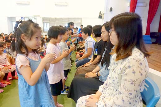 金鼎國小為了讓學生了解教師節的由來及其意義,並體認師長的辛勞與付出,激發尊師重道與感恩之心,特於教師節前夕舉辦了一項非常特別的活動-「敬師賓果樂」,學生代表奉茶給所有老師表達感謝,讓校園充滿著祝福與感恩的氣氛。 金鼎國小指出,學校利用教師節前,由輔導組製作「敬師賓果卡」發給各班小朋友,學生持賓果卡於下課時間,尋找心目中符合該項特質(如:活力滿點、博學多聞、慈祥和藹、有耐心、有愛心等)的老師,向他說出通關密語:「老師祝您教師節快樂!您辛苦了!謝謝您!」後,即可請老師簽名或蓋章,完成九格後,即可參加「敬師賓果樂」活動,讓校園充滿著祝福與感恩的氣氛。 昨日辦理慶祝活動,首先進行「敬師賓果樂」遊戲,完成連線及遊戲任務的學生,可持賓果單換取神秘小禮物,接著由學生代表奉茶給所有老師,表達感謝之意,最後全校一起大合唱「師恩深 一生深」,在溫馨的歌聲中結束整個活動。 校長曾秀玲表示,這一系列的敬師活動,將品德教育融入生活中實踐,希望孩子們能「知恩、感恩、惜福」,最重要的是可以讓老師們在只紀念不放假的教師節,透過與學生們的有趣互動,擁有愉快的心情!