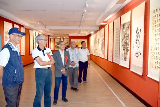 「人生的下半場一定要更精采」,金門縣退休教師協會的老師們用創作豐富自己的人生。金門縣退休教師協會第十八屆書畫展,於教師節前夕舉辦開幕式,9月27日起在文化局第二展覽室展出,展期至10月15日止,歡迎鄉親一起來觀展。 退休教師協會書畫展於昨日上午十時假文化局大廳舉行開幕式,協會成員三十餘人共襄盛舉,集縣內創作能量豐盈的退休老師,共同展出書畫創作數十幅。文化局長許正芳特地向老師們致意,表示老師在校作育英才,退休後從教學轉為鑽研學習,如此精神給予許多人啟發。 「老師應該退而不休,殘餘的力量應積極的貢獻給下一代」,秉著為社會做點事的想法,現任榮譽理事長的鄭慶利偕同幾位老師在十九年前籌畫設立金門縣退休教師協會。為傳承中華文化,因此鼓勵協會的老師們利用退休後的時間創作,數年來舉行書畫展,後來也和廈門、泉州的退休教師合辦聯展。鄭慶利謙虛地表示,他在中正國小前校長林金龍的鼓勵下才開始嘗試創作,苦練多年,此次終能提供八幅作品參展。 成立協會需公文往來,鄭慶利深感使用電腦的重要性,「不會,不要覺得丟臉,學會就是自己的」,七十歲開始以兒子、孫子為師,現年八十三歲的他,文書處理可是一把罩。 現任理事長吳友欽表示人生下半場是意義追尋的旅程,退休後把以前想做而沒能做的事好好的發揮,更要終身學習。他說自己對書法有興趣,卻一直沒能好好練習,今後該效法鄭榮譽理事長過了耳順之年後學習電腦和書法的精神。吳友欽表示除了藝文之外,為長輩服務也是值得大家一起努力。 退休教師們將平日的修持與感悟反映在作品裡。楊清國行書作品「普賢菩薩十大願」,體現近來研讀佛學經典的影響;董朝來寫著大大的「佛」字;「家和萬事興,都聽老婆的」,為鄭慶利此次參展的書法作品,他表示聽某嘴大富貴,也鼓勵在場的男性們這樣做;陳志鈺除了率性的雙管齊下的字外,此次也展出篆書作品;謝華東在書法外,也展出國畫作品,葫蘆棚架下的雞,寓以「吉祥平安」之意……。本展覽自即日起在文化局第二展覽室展出,展至10月15日止,請民眾蒞臨觀展。