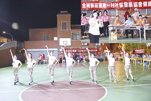 中秋月圓人團圓,迎接中秋節的到來,很多社區都先後舉行秋節慶祝聯誼活動,金城鎮金城新莊富康一村社區發展協會的慶中秋活動安排有舞蹈、博餅等健康低碳活動,社區居民歡聚在一起,提前歡度一個中秋佳節。 金城新莊富康一村社區發展協會健康活動日昨在大同之家育幼組籃球場舉行,由該協會理事長周鳳珠主持,議員唐麗輝(社區前理事長)、縣府社會處副處長李文堆、秘書李正騰、金城鎮代表胡凱宇等貴賓,以及社區的居民踴躍到場參與。 周鳳珠理事長指出,社區推動無菸無碳社區,本次活動以健康為主,沒有烤肉、只有健康的娛樂活動,現場只提供健康的水果與糕點,以及健康的舞蹈表演和大家歡慶中秋佳節,也感謝楊縣長與縣府贈送高粱酒與補助經費,社會處、大同之家提供場地、設備資源,鎮長李誠智及代表贊助活動資源。 縣府秘書李正騰致詞時也代表縣長楊鎮浯祝大家月圓人團圓、中秋節快樂,他說,楊縣長再三交代「鄉親的事就是縣府的事」。 社會處副處長李文堆指出,社會處辦公處所在社區內也是社區一份子,大家平常上班忙碌,趁此共聚機會聯誼一下,聯絡感情,祝大家有個愉快的夜晚。 議員唐麗輝祝大家月圓人團圓,她指出,社區只有在中秋節才會辦理這項活動,主要是因為沒有場地,期待社福二館成立後能有一個家,一個活動的場所,希望社福二館完成後社會處可以規劃一個長輩都可以活動的處所,帶給社區居民幸福的感受。 胡凱宇代表感謝社區盛情邀約參與這項健康促進聯誼活動,他說,該社區與其他社區活動性質不一樣,是低碳無碳健康的晚會,社區功能對於社會越來越重要,更需要社區居民的參與,祝大家中秋節快樂。 活動現場載歌載舞,有「和諧之光」元極舞、「despacitor」熱舞,以及「好朋友、一起闖天涯」、「一生一世我愛你、心花開」、「白月光」、「夢中恰恰」、「最親的人」、「一晃就老了」、「那裡的山那裡的水」等現代舞或土風舞的演出,精彩的舞曲,健康有活力,吸引大家目光,而現場也準備了水果及糕點,讓大家一邊欣賞、一邊享受,約在晚間八時三十分並舉辦博餅活動,大家歡聚在一起博手氣,其樂融融,現場氣氛熱絡,提前歡度一個愉快的中秋佳節。