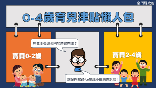 配合行政院推動「我國少子女化對策計畫」,教育部補助地方政府發放2至4歲育兒津貼已於108年8月1日起上路,有關育兒津貼之申請,其中社會處和教育處就中央和地方補助有競合處,為避免申請初期產生誤會,金門縣政府教育處特別製作了宣導懶人包,希望讓有意申請民眾能夠進一步的了解。 教育處指出,教育部補助地方政府發放2至4歲育兒津貼,係為尊重家長選擇權,對於未接受公共化或準公共化服務之家庭提供育兒津貼,減輕家庭負擔,所以將衛福部現行發放之0至2歲育兒津貼對象延伸至2至4歲。 育兒津貼補助對象時程 衛福部0至2歲及教育部2至4歲育兒津貼補助對象時程為:(一)衛福部補助0至2歲:出生當月至滿二歲當月。1、自己帶:2,500元。2、公托:3,000元。3、準公共化托嬰中心、保母:6,000元。(二)教育部補助2至4歲:滿二歲至未滿五歲學齡前。符合申請資格者:2,500元。(第3名以上子女:3,500元)。(三)幼兒滿2歲當月還領有衛福部發放的0至2歲育兒津貼者,由教育部依衛福部資訊系統提供之資料直接審核,無須重新申請;108年7月前,已停止領取衛福部0至2歲育兒津貼的幼兒,滿2歲之後申請人則須重新申請教育部補助之2至4歲育兒津貼。 2-4歲育兒津貼申請作業 以下針對有關教育處2至4歲育兒津貼申請作業注意事項: 一、補助對象為:實際年齡滿2歲至未滿5歲學齡之國籍幼兒,且符合下列條件之幼兒父母雙方或監護人情形者:(一)所得稅稅率均未達20%。(二)未正在領取照顧該名幼兒之育嬰留職停薪津貼。(三)幼兒未就讀公立幼兒園、非營利幼兒園、社區(部落)互助教保服務中心及特教學校或準公共幼兒園。(四)未經政府公費安置收容。 二、申請方式:(一)親送或郵寄至幼兒戶籍所在地的鄉(鎮)公所。(二)委託他人代為申請者,申請人應於申請表內有關同意授權委託之欄位簽章。 三、需準備哪些文件:(一)2至4歲育兒津貼申請表(需父母雙方或監護人簽章)。(二)幼兒及申請人的身分證明文件。(三)幼兒或申請人之郵局帳戶影本。(四)其他相關佐證資料(如第3名以上子女相關證明文件等)。 四、補助金額:(一)幼兒每人每月新臺幣(以下同)2,500元。(二)第3名以上子女:每月再加發1,000元,共計3,500元。 五、申請表如何取得:(一)至全國教保資訊網(https://www.ece.moe.edu.tw/)下載。(二)至本縣各鄉(鎮)公所領取。(三)至本縣教育處網站http://www.km.edu.tw/#)。 六、撥付時間:經審核確認符合請領資格者,將自受理申請之次月起,按月於每月月底前撥付育兒津貼至申請人指定郵局帳戶。 社會處差額補助方案(資格限定)有關社會處和教育處就中央和地方補助競合:社會處育兒津貼差額補助方案(資格限定): 一、0-5歲父母照顧子女津貼:(一)申請對象:父或母未就業及子女未就讀公私立幼兒園。(二)補助金額:2,500元(育兒津貼)+500元(差額補助)。 二、2-3歲托育補助:(一)申請對象:限原領3000元及108年7月31日前申請者。(二)補助金額:2,500元(育兒津貼)+500元(差額補助)。 而為提供家長一個穩定、舒適的育兒環境,讓民眾更清楚了解相關福利及政策,縣府也將陸續透過多元管道擴大宣導,避免民眾不清楚而錯失相關福利補助。若有相關問題,民眾可洽撥打免費諮詢專線0800-205-105、教育處(082-325630)、社會處(082- 324648)、本縣各鄉(鎮)公所或至全國教保資訊網中之2至4歲育兒津貼專區下載問答集。