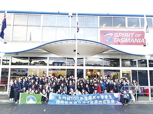金門縣一○八年度國民中學學生國際教育暨交流活動澳洲塔斯團師生一行,在塔斯馬尼亞完成長達三周的海外生活及學習之旅後,於昨(八)日圓滿告一段落,隨即搭乘郵輪,在離情依依和充滿有歡笑與眼淚揮手互道珍重再見,離開塔斯馬尼亞回到墨爾本。在全程國際教育交流裡,澳洲塔斯團師生不僅在塔斯馬尼亞島上西北各城鎮的學習之旅,更也親臨了澳洲最大的兩座城市雪梨、墨爾本,見證「體驗澳洲國民旅遊行程」的滿足,以及看盡南半球最美的每一個角落,讓金門學子開拓遠渡重洋視野和國際觀。 來自金門縣國中二年級學生的澳洲塔斯團,係於上個(七)月十七日、十八日分A、B團,先後前往澳洲塔斯馬尼亞八所中學展開三周交流學習及展開國外生活。並入住寄宿家庭展開教育暨交流學習活動。在國際教育暨交流活動期間,塔方師長設計多項小組合作、互動性課程,讓兩個島嶼的孩子認識彼此的成長地理環境、城市風貌、飲食習慣,甚至設計語言性遊戲,藉由兩兩提問與回答,不但促成語言的運用更幫助拉近與面前這位外國人的距離,歡笑聲中展現跨國接觸的同儕活力! 澳洲塔斯團帶隊教師向多數學生確認是否懂得塔斯同學與師長的對話或提問時,超過半數的孩子是能聽得懂七成左右。當帶隊教師再詳細追問如何練就英語的聽說能力時,更多數學生正面肯定金門多年來引進英語外籍教學助理與英語外籍教師的政策有很大的助益。而且,不僅讓學生們在金門校園內就有原汁原味的英語發音可以仿效,更直接影響是:對接觸外國人早已習以為常。 教育處處長羅德水表示,金門自九十二年起,縣府教育處與金車文教基金會首度合作,引進美國青少年到金門島協助英語教學工作。近七年,又與學術交流基金會合作,引進優秀美籍大學畢業生到金門教學服務至今,十多年來已經培養四位當初的教學助理順利取得美國教師證,並受聘成為正式英語教師,在金門中小學任教。另,金門地區始終是學術交流基金會美籍學人的首選,足見金門受歡迎的程度,也因此能穩定發展金門地區英語教學的優質化。 塔斯各校師長對金門縣重視外語教學與國際視野深感認同,更透過我方學生相較於塔斯學生優秀的第二外語能力,吸引了他們對金門島上外語教學系統表的好奇;甚至期待雙方建立師資互惠,未來塔方提供英語教師、金門提供中文教師進行雙方師資互助與短期交換計畫,增強現階段國際教育交流效益的長久性。 當澳洲塔斯團學生漸漸習慣西方教養的學習與生活環境中學會獨立思考、自我照顧的金門學子,才正要好好享受這份自在,卻到了打包行李準備回家的時刻,各個寄宿家庭在第三週展開了許多聯合歡送會,還邀請到去年回訪金門的當地學生一起到場敘舊,聊金門、聊塔斯、聊當下、聊未來,聊不完的不捨,在每一句「Please, don't miss me!」中含著玩笑式的真實,期盼稍稍緩和不捨說再見感傷。 此趟塔斯馬尼亞旅程,澳洲塔斯團師生於昨(八)日下午七時搭上塔斯馬尼亞精神號郵輪,由德文港航向墨爾本後,便向塔斯馬尼亞告別。當天,金門學生們是由接待家庭載著行李正常時間到校,完成當天在學校課程之後,於不同時段搭上開往德文港的專車巴士。許多接待家庭父母特別請假,帶著家人於下午時再次抵達學校,只為了跟金門學生再說一聲再見,眼淚在Host Mother的臉頰上滑落時,孩子也忍不住哭了,那一刻的擁抱充滿離情依依,也是生命的永恆回憶。 教育處督學李卓恩與十位帶隊老師引領七十九位國二同學,分成八組進入八所澳洲塔斯西北部重要城鎮的中學部入班學習,平均學生數在四百至五百的塔斯校園僅有金門十位左右學生,所接觸在地同學的機會較去年增加,更降低我方學生群聚現象,是今年計畫修正的重要項目之一。 其中,今年新加入交流行列的「企鵝區學校(Penguin District School )」是小一至高中的完全學校,金門學生平時上課在九年級教室,每週五早上卻帶著繪本到小學部說故事給小朋友們聽,甚至教小學生們簡單中文,深受孩童們的喜愛與歡迎。 縣府教育處表示有著第二年交流經驗的Smithton、Wynyard、Ulverstone、Burnie、Parklands High School等五校,延續去年交流經驗為基礎,今年更落實了:第一、木工課程的體驗,讓我方學生自己動手做出一面,人手一塊芬芳的「木沾板」帶回金門;第二、烹飪課兩國美食交流,習慣熱食的金門學員在烹飪課中熟練培訓時炒泡麵的操作,滿足自己想要熱食的慾望,同時端出餛飩、水餃、火鍋等簡單美食,大獲好評。第三、英語強化課程主題融入、多元結合。第四、在地自然風景探索,上山下海無所不去,在大山大海間認識塔斯馬尼亞。另外兩所新加入的Reec和Latrobe High School雖仍在摸索著辦理交流內容,卻能向其他各校保持聯繫,努力承接「金塔案」的內容與精神。 除了學校生活,金門學生們最意外的欣喜是普遍溫馨而熱情的寄宿家庭。下午兩點多家長們便等候著接走我們的孩子,準時帶回家休息或跟家人活動;週末更是滿滿的戶外行程。多數金門學生們感受得到寄宿家庭的關愛;寄宿家庭總是詢問我方學生喜歡吃什麼、想要做什麼、想去哪裡走走…,「有提必應」的以學生為優先,讓學生感受被尊重與被疼愛,是一解鄉愁最大的良藥。另,澳洲塔斯團師生在塔斯馬尼亞國際教育及交流活動旅程中,縣府參議陳金增曾赴塔斯視察和瞭解師生生活與學習狀況,他並代表縣長楊