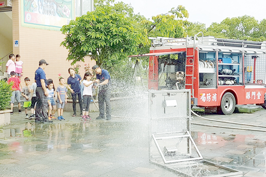 金沙消防分隊至金沙國小辦理暑期消防營活動,在消防隊員為與會逾40名學生講解消防常識,並以分組體驗方式,進行模擬119報案及心肺復甦術及AED操作;煙霧體驗,了解火場正確逃生。鑑於暑期從事水域活動機會增加,也特別傳授防溺十招及救溺五步,並提醒學生要注意安全,期藉此消防營向下扎根防災知識,以有效降低災害。 金沙消防分隊結合金沙防宣分隊,至金沙國小辦理暑期消防營活動,金沙消防分隊由分隊長楊文斌率隊,包括小隊長許春祥、隊員周君泉、林昶志、吳家緯、役男欉尉世,以及防宣分隊副分隊長吳家茜、隊員李惠鈴、陳佩詩等到場為學童講解消防常識,並以分組寓教於樂方式,帶領與會學生學習CPR、體驗消防射水等,讓學生於暑期學習課本以外的重要防災新知,也藉以灌輸學生防災意識暨各種災害應變能力。 金沙消防分隊於現場設計分組宣導及體驗,讓金沙國小學生逐一學習及操作,消防常識講解,119報案,CPR心肺復甦術及AED使用時機及操作方法,煙霧體驗,讓學員體驗火場濃煙正確逃生避難,並製作家庭逃生計畫「1216」,住宅火災警報器;瓦斯安全;爆竹煙火安全;火場應變:發現火災第一時間因應,消防射水體驗等。 鑑於夏季從事戶外及水域活動機會增加,消防隊員也特別傳授「叫、叫、伸、拋、划」等防溺十招及救溺五步,並提醒學員夏天到海邊從事水域活動務必注意安全。 此外,透過瞄子實際噴水以及煙霧體驗,消防員也告訴學生,火災發生時之正確因應,如火災第一時間要大喊失火叫醒家人,並往火、煙、熱的反方向進行避難逃生,往1樓方向逃生、往下逃,所有逃生出口均受阻礙時,請退回相對安全區,關門靠窗求救等待救援,不可跳樓,也不可躲浴室等。 家庭逃生計畫「1216」係指,繪製家中平面圖,找到兩個不同方向之逃生出口,事先選擇一處逃出火場之戶外安全集合點,熟悉逃生方向並與家人定期(六個月)演練。 金沙消防分隊表示,藉由此次暑期消防營活動,將相關防災知識向下扎根,讓學童自幼建立正確觀念,並作為小小消防大使,將所學帶回家告訴周邊親友,以期提昇地區民眾的防災意識,有效降低災害發生率。 而夏季民眾從事水域活動增加,消防隊員、防宣分隊除了平常下鄉或到校園宣導外,也特別結合此次活動加強提醒學童,炎炎夏日,到戶外戲水時要注意安全,做到「量力而為」,以避免憾事發生。