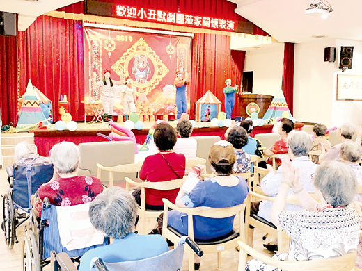走遍世界各地的小丑默劇團,自發性的活動,希望傳達愛與關懷到每一個偏鄉的小角落裡,由團長黃浩洸所帶領的團隊,於日前來到了大同之家,用詼諧有趣生動的表演,與現場的阿公阿嬤熱絡互動。精心的背景布置全由演員們自己搭設,配合動感的音樂,以及演員濃厚的妝感、鮮豔的穿著,並與長輩零距離接觸,現場一片溫馨歡樂氛圍,彷彿進入另一個童話世界。 小丑演員們不僅到台下與長輩們互動拍照,並鼓勵長者上台參與表演,還精心準備小禮物贈送,從長輩臉上樂開懷的喜悅表情,能感受到這是一場非常有感染力的演出。表演結束後,演員們也不時關心著阿公阿嬤今天有沒有開心,感受到小丑演員們的敬業精神。最後主任楊志斌特別感謝小丑默劇團的到來,讓阿公阿嬤開開心心度過一個愉快的午後時光,期待下次再度蒞臨。
