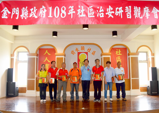 為落實「治安社區化」政策,金門縣108年度社區治安研習觀摩活動昨日在前水頭社區活動中心進行一天的課程,縣府秘書長張忠民代表縣長楊鎮浯頒獎表揚本縣推動社區治安工作績優社區及人員,感謝平時為社區治安所作的努力和付出,他並強調,警力有限,民力無窮,唯有藉由社區民眾主動參與和關心,才能建構安全的社區環境。 本縣108年度全縣性之社區治安觀摩研習活動昨日上午九時起在金城鎮前水頭社區熱絡展開,縣府秘書長張忠民、社會處長董燊、環保局長楊建立、陳玉珍立委服務處主任林孫全、縣議員蔡水游、李應文、石永城、王碧珍、李養生、金城鎮長李誠智、金城鎮代表會代表倪于媃、陳子芸,及縣警局督察長江建宏、金城分局長李益杰、金湖分局長黃維章、防治科長黃世雄、少年警察隊長黃書星、刑大副大隊長董紀宏、交通隊副隊長楊光宗……等貴賓列席,參加人員還有縣府社區治安團隊,社區守望相助隊成員,及社區發展協會成員總計約200人參與活動,相互交流。前水頭社區發展協會理事長黃延良(金水里里長)帶領居民在場呈現治安工作成果。 昨日的活動由古城國小大鼓隊展開序幕,接續由社區志工所組成舞蹈隊表演活力舞姿熱絡會場,張忠民秘書長分別頒發榮獲內政部108年度標竿社區-忠孝新村社區,及榮獲本縣107年度推動社區工作評鑑績優社區:第一名金沙鎮忠孝新村社區守望相助隊、第二名金城鎮前水頭社區發展協會、第三名金湖鎮下莊社區發展協會、第四名金湖鎮新頭社區守望相助隊。本縣107年度社區治安營造治安社區績優人員:前水頭社區發展協會楊麗娟、忠孝新村社區守望相助隊張延智、榮光新村社區守望相助隊黃書武、新頭社區守望相助隊駱宗興、下莊社區發展協會蔡明團、古崗社區發展協會馬延任、東坑社區守望相助隊洪國泰等人。本縣社區治安諮詢委員聘書:金城鎮委員代表里長顏士強、金湖鎮委員代表里長呂永林、金沙鎮委員代表里長楊恭勤、金寧鄉委員代表村長翁品洋、烈嶼鄉委員代表村長林龍照等人。 張忠民對於本縣社區治安團隊,能建立多元合作夥伴關係,暢通協調聯繫機制及輔導社區永續經營深表讚許。他指出,警力有限,社區的治安端賴全民的共識和參與,才能維護社區的和諧。金門以往是農村型的社會,展現守望相助的互助精神,隨著社會的變遷和開放,觀光人口的導入,也衝擊著社區的治安問題,唯有居民有著維護生活家園的共識和付出,發揚傳統敦親睦鄰美德,積極投入協助維護治安行列;結合社區警政工作,建立警民「夥伴關係」,以服務為導向,加強警察與民眾間互動聯繫並針對社區內各種問題共謀對策或解決之道,以達成強化民眾自我防衛體系之力量,共同努力來建構安全社區。 前水頭社區理事長黃延良為使本次觀摩活動順利完成,結合警政、消防、社政、前水頭社區及古城國小等,推出多項課題;並邀請警察局、消防局、環保局、衛生局、民政處、社會處進行業務宣導,使觀摩活動內容豐富與多元化,現場氣氛熱絡。 昨日現場進行消防救災實作演練,培育防災的觀念與災害緊急應變能力。實作演習後,由前水頭社區人員與縣政府社區治安輔導團隊帶領實施「社區環境檢測及導覽」簡介,於前水頭社區進行治安環境踏勘、研習活動。 研習活動中也特別邀請消防局科長林俊、警察局刑警大隊副大隊長董紀宏、社會處社工師陳姿妦講授「社區防救知能及自救」、「反詐騙及防毒宣導」及「認識家庭暴力」等課程,藉由研習課程相互學習觀摩,以深化社區組織自我防衛能力,建立自我解決治安問題能力。 整個研習觀摩經過8個小時的演練,授課及踏勘活動後圓滿落幕,前水頭社區民眾展現「治安社區化」的各項執行成效,也讓參與的民眾收穫滿滿。