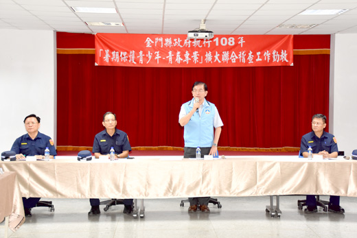 地區各級學校從上(6)月28日開始放暑假,而今(108)年度的暑期青春專案已於6月1日凌晨零時正式開跑,專案期程3個月,縣警局昨(1)日晚間整合優勢警力與縣府相關局(處)同仁展開擴大「聯合稽查」勤務,縣府秘書長張忠民在警察局局長張國雄陪同下實地視察臨檢場所,宣示縣府淨化妨害青少年成長環境、保護青少年安全的決心。 一年一度的暑期青春專案已開跑,期程包含學生會考結束、畢業典禮及整個暑假的時段。青春專案期間縣府集合警察局、建設處、教育處、社會處、衛生局、環保局、消防局等單位行政資源,共同辦理「淨化妨害青少年成長環境、防制青少年被害、擴大預防犯罪宣導」這三大主軸工作,同時並加強檢肅幫派毒品、查緝兒少性剝削、兒少網路犯罪、協尋18歲以下失蹤人口及取締危險駕車行為等工作項目。 縣府秘書長張忠民於昨(1)日晚間8時,代表縣長楊鎮浯前抵警察局主持暑期青春專案擴大「聯合稽查」勤教會場,除聽取青春專案工作簡報、精神講話外,並由警察局局長張國雄陪同實地視察臨檢場所。他除了慰勉執勤員警辛勞外,還特別提醒要善加運用縣府跨局、處「聯合稽查小組」,加強查察八大行業(電子遊戲場、網路咖啡店)等青少年易聚集之場所,以避免青少年被害情事發生。 張忠民表示,警察局整合優勢警力與縣府教育處、社會處、建設處、消防局、衛生局、環保局等相關局(處)同仁投入本次擴大「聯合稽查」勤務,也希望執勤人員能注意自身安全,一切以符合法治來執行,並以保護民眾安全為優先。 青春專案期間,縣府相關單也將持續針對各危險水域做好防溺宣導,並加強定點巡察工作。他說,暑假期間係青少年犯罪高峰期,針對毒品、幫派、兒少性剝削、兒少網路犯罪及危險駕車等類型犯罪,警察局已縝密規劃,並強化各項勤務作為,以降低犯罪、預防犯罪,有效確保青少年暑期優質、平安、健康的環境。 他呼籲家長們共同關心自己的小孩,於暑假期間規劃健康有意義的休閒、育樂活動,以免過於閒暇,滋生偏差行為,或遭受不良分子引誘,而引發脫序違法行為。 另外,對於暑假期間許多陸客來金旅遊騎乘電動自行車問題,張忠民說,不少駕駛人對於路權、交通法規相關知識不足,時造成逆向、併排行駛及使用手持電話等,用路安全令人擔憂,警方已透過轄內電動自行車租賃業者加強宣導陸客電動自行車安全駕駛觀念,藉以了解本國騎乘電動自行車所應遵循之相關交通法規,同時也會加強取締,期透過稽查、宣導方式提升道路交通安全。
