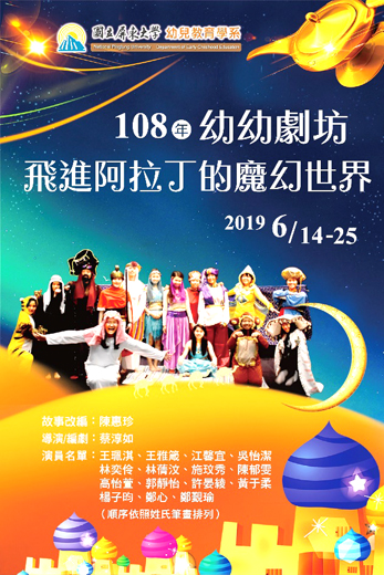 國立屏東大學幼兒教育學系執行教育部高教深耕計畫,今年幼幼劇坊公演推出「飛進阿拉丁的魔幻世界」新劇碼,首度與機器人共演,在飛天魔毯帶領下,將於廿四日至廿五日抵金與金門縣幼兒共同一起倘佯在戲劇演出,與幼兒科學遊戲的互動氛圍,實際見證科學實驗效果。 縣府教育處表示,「飛進阿拉丁的魔幻世界」新劇發想來自國立屏東大學幼教系主任陳惠珍,並經由蔡淳如老師進行編導,帶領屏大二年級學生集體創思,劇中結合戲劇故事的幼兒科學遊戲,運用教習劇場演出模式,透過戲劇跨領域統整幼兒科學,讓演員透過演出,引導幼兒進行特定科學議題的探索與思考,以推廣STEAM教習劇場。 另,STEAM教習劇場為2018年由屏大幼教系於全臺首創發表,在排練過程中,學生除了排練戲劇演出之外,還歷經一次又一次的實驗科學,就是為了讓幼兒在觀賞戲劇演出的同時,也沉浸在幼兒科學的學習範疇,同時以互動劇場方式讓幼兒親自參與其中,達到科學實事求是的學習精神。 縣府教育處表示,「飛進阿拉丁的魔幻世界」一劇共演出六場:六月十四日在國立屏東大學首演後,隨即巡迴公演五場,其中三場在金門:六月廿四日上午古寧國小附設幼兒園、下午述美國小附設幼兒園;六月廿五日上午安瀾國小附設幼兒園。 此次幼幼劇坊巡迴演出除了帶給幼兒戲劇美感的體驗外,亦期盼激起幼兒對科學探究的興趣,因此也首度編寫了教師手冊,以便幼兒園教師延伸戲劇中的科學與數學活動。 縣府教育處說,「飛進阿拉丁的魔幻世界」一劇處處有驚喜,精彩可期;想知道阿拉丁如何以一根棍子逃出神秘谷老虎洞,又如何在神燈精靈的幫忙下,以智慧的方法瓦解邪惡賈方的魔咒,最後如何通過茉莉公主的考驗,就讓充滿現代科技的幼幼劇坊,引領大家一探究竟吧!