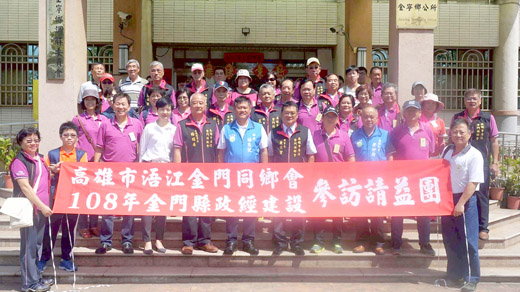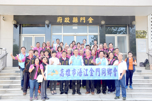 高雄市浯江金門同鄉會第十一屆全體理監事等一行四十人,昨抵金展開三天兩夜金門之旅。縣長楊鎮浯昨日上午在接待他們時,也肯定同鄉會扮演中堅為民服務角色。 楊縣長也請社會處同仁,未來全力為同鄉會在計畫提出的撰寫給予協助。 該一行昨日上午九時十分許,在理事長黃根寶、名譽理事長楊維居和總幹事黃國田帶領下,前往金門縣政府拜會參訪,受到縣長楊鎮浯、社會處長董燊等人熱烈歡迎。 黃根寶表示,這趟到縣府請益,也感謝縣府對同鄉會的大力支持。楊維居也感慨旅台同鄉會因縣府補助或家戶配(購)酒為部份人士有意見和污名化,強調早期同鄉會都是為旅台鄉親提供服務和急難救助,也不曾討過經費,在旅台同鄉會愈來愈多,現在是已有廿九個了。 楊縣長表示,對於旅台同鄉會因縣府補助或家戶配(購)酒為部份人士有意見和污名化,是強調同鄉會具有正面力量功能,縣府今後對補助或家戶配(購)酒將做微調,朝輔導旅台同鄉會在逢年過節為鄉親服務提活動計畫,以及青少年返鄉尋根、推廣金門文化等努力。