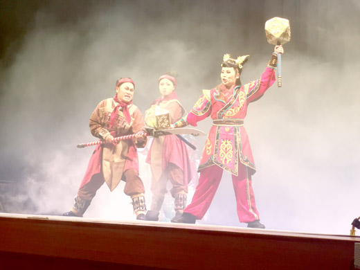 明華園黃字戲劇團昨起於金門縣文化局演藝廳連著兩晚為鄉親帶來《隋唐英雄傳》第四章、第五章。精彩的文武戲、強大的舞台魅力,令喜愛傳統戲曲的民眾,早早的在昨晚不到七時,就扶老攜幼的坐滿整個觀眾席,深深為舞台表演所著迷。今晚將演出《隋唐英雄傳》第五章,歡迎民眾到文化局來看戲。 由獲得2018年國家文藝獎的陳勝國編劇的《隋唐英雄傳》(十八瓦崗),演的是隋唐年間瓦崗寨眾英雄的故事,已有數章的作品問世呈現在觀眾眼前,去年也來過金門為觀眾獻上這個故事前面的劇情,《隋文帝一統南北朝,秦叔寶長安觀花燈》、《秦叔寶策馬楂樹崗,伍雲召力戰無敵將》,今年於6月22日、23日兩晚演的是《裴元慶賭氣投瓦崗,李元霸報恩戰金堤》、《太行山聚三勇,四五六戰孤二》。 由陳勝國編劇的《十八瓦崗》,講述隋文帝統一南北朝,到唐太宗登基之間的故事。故事本於清代的《說唐演義》,瓦崗寨的眾英雄角色鮮明,故事為民間所熟悉,歷來多次被電視劇所改編。故事中的裴元慶有「萬人敵」之稱,而十八好漢眾人間的排名向來沒有統一的說法,裴元慶通常被排在第三位,在宇文成都和李元霸之下,武功之高令人折服。舞台上叱睥睨的風采,令台下觀眾為有他出場的武戲給予許多掌聲,闖入隋煬帝和大臣弈棋的居室,打翻一干衛士,之後戰瓦崗英雄,逼得眾人敗退;同是耍著大鎚的李元霸,在昨晚演出的故事中也展現了舞台的魅力,武戲精彩令人叫好。 團長陳子陽為這齣戲更是不惜重金成本,精心製作,將傳統戲曲巧妙結合創新的音樂、燈光、舞蹈等各種藝術,創造令人驚奇的舞台魅力,實屬教育與娛樂兼具的藝術表演。連兩晚由當家小生翁妙嬅(出演裴元慶)、明華園優秀菁英陳靖瑋、陳子豪、陳子權、董如玲、陳昭薇、明華園新生代新秀陳子懿、陳書涵等共同演出,呈獻二檔精彩的連本好戲。歡迎民眾今晚也到文化局感受傳統戲曲在舞台上的魅力吧!