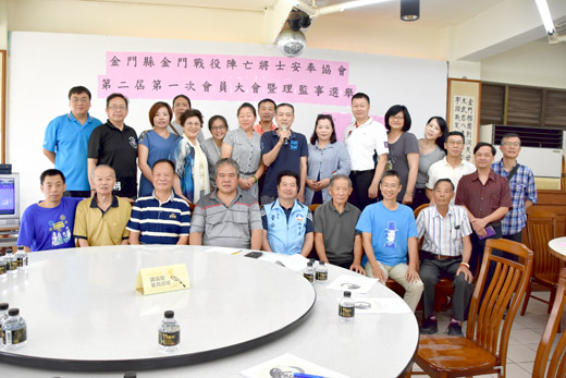 金門縣金門戰役陣亡將士安奉協會昨假救國團舉行第二屆第一次會員大會,會中改選新任理監事,理事長由楊松發續任,由李彥辛出任常務監事。 該協會昨日進行理監事改選,並將理事人數從九人下修為七人,理事有:楊松發、陳明泰、陳勝川、黃應龍、王豔萍、陳國琍、李美雙,監事有:李彥辛、楊詩傳、楊銘達;由推舉出的理監事成員各自互選,最後由楊松發續任第二屆理事長,監事則由李彥辛出任。社會處處長董燊也在選出理監事後到場致意,祝福協會會務推展順利。 金門戰役陣亡將士安奉協會成立的宗旨即在為戰死在金門的陣亡將士撿骨安奉。楊松發指出金門有數間的將軍廟,廟中奉祀的不論是國軍還是共軍,都在死後被當地居民慰靈奉祀;他認為因為金門人懂得寬容,因此特別珍惜和平,為此更需感恩前人的付出換取來的現在。 今年逢古寧頭戰役七十周年,協會是否會配合舉辦活動?對此問題,楊松發表示因為協會經費不寬裕,因此無法有大支出,協會主要任務在起掘遺骨,以骨灰甕為祂們暫厝,最終希望能覓得一地安置。協會的標誌為太極圖,太極具有陰陽調和之意,協會希望能做到生者安樂、亡者安息,人冥兩安。