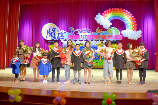 畢業季到,開瑄國小昨(18)日上午在社福館舉辦畢業典禮,歡送27位國小畢業生以及30位幼兒園畢業生。校長孫麗琪勉勵畢業生「願意付出,人生才會精彩」、「擇善堅持,成就一定不凡」、「懂得惜福,必是最有福氣的人」,並祝畢業生勇敢而幸運、健康而快樂、自信而成功。 開瑄國小六年級畢業班學生有27位,由薛秀鳳老師所帶領,在學校裡他們是令人敬愛的大哥哥大姊姊,是所有學弟學妹們的表率,在家裡他們更是成熟懂事的好孩子。而附設幼兒園畢業生有30位小朋友,在老師的教導下他們個個有禮貌、愛上學,今年夏天過後也將升上開瑄國小一年級,是學校未來充滿希望的生力軍。 畢業典禮上頒發各項學習領域績優獎,以及包括親職教育家長獎,獲獎者有張璨、陳淑姿、張瑞依、彭思穎、郭天雯、陳韋辰等6人,開瑄國小表示,表揚親職教育成功之家長,以肯定其貢獻,並激勵家長更重視家庭經營與子女教育。 開瑄國小校長孫麗琪勉勵畢業生三句話:「願意付出,人生才會精彩」、「擇善堅持,成就一定不凡」、「懂得惜福,必是最有福氣的人」。孫麗琪說,能夠感恩惜福的人,必能贏得眾人的疼愛,在即將畢業離校的此時此刻,希望畢業生都能以最虔敬的心,感謝養育你們的父母,感謝教導你們的師長,感謝學校以及整個社會提供給你們的優良環境與愛護支持。謹記任何個人的成就都不僅是他個人能力所致-這其中有太多「施恩者」的賜與。感恩惜福讓我們更謙虛、也能不斷砥礪自我,奮發向前。最後,孫麗琪祝福畢業生勇敢而幸運、健康而快樂、自信而成功。 畢業典禮結束後,緊接著是懇親遊藝表演,由學校三至六年級小朋友大鼓與揚琴社團合奏表演,集體為畢業生鼓舞,另有兒童劇、活力韻律與青春動感熱舞等精彩節目。 開瑄國小特別感謝學校家長會的支持,感謝家長會會長許丕國充份發揮號召力,勸募各界及家長會顧問致贈六年級27位畢業生每人一個名牌背包,國幼班小朋友每人一本國語字典當畢業禮物。另外所有學生登台演出的服裝均由家長會出資租借。