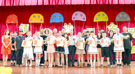 安瀾國小今年假學校運動場舉行畢業典禮,校長張志猛手舉聖火引領18位畢業生跑步進場炒熱氣氛,師長、貴賓、居民、校友齊聚一堂獻上祝福。6年級畢業生用演出致謝詞並回顧在安瀾生活的點點滴滴,接著帶動全場齊唱畢業歌,即將自安瀾「畢業」的外師方炫也一起手舞足蹈,現場HIGH到不行,加上家長會長蔣光華精心為學子準備爆米花、雞蛋糕和霖淇淋,現場宛如小型運動嘉年華會,大人小孩皆大歡喜! 安瀾國小連續兩年於戶外舉辦畢業典禮,去年假睿友學校舉行,今年移師學校運動場辦理國小部第58屆暨幼兒園第42屆畢業典禮,典禮由校長張志猛主持,他並手持聖火引領9位六年級畢業生及9位幼兒園畢業生跑步進場,炒熱現場氣氛。縣府教育處副處長陳家輝、金沙鎮鎮長吳有家、金沙國中校長黃明森、金沙國小校長李盈潔、何浦國小校長陳佩玉、述美國小校長劉界宏、安瀾國小家長會會長蔣光華、三山里里長陳賜發、多位安瀾退休教師、學區家長和校友們齊聚一堂參與。 與會貴賓聯袂頒獎嘉勉18位畢業生,肯定他們在各領域的優異表現,各班也準備精彩的舞蹈和戲劇演出同樂,畢業生用表演回顧六年來在安瀾的點點滴滴,並帶動全場齊唱畢業歌「一笑傾城」,全場師生台上台下相互唱和,現場HIGH到不行。值得一提的是,除了由蔡佳妤、薛羽恩代表18位畢業生自校長手中領過畢業證書外,英語外師方炫即將結束他在安瀾的教學之旅,校長張志猛也頒發特製的畢業證書,感謝他為安瀾學子的付出,由於事前保密到家,讓方炫又驚又喜。最後,畢業生大手攜小手向師長獻花致意,也讓典禮既歡樂又溫馨。 安瀾國小畢業生昨日帶著各界的祝福離開校門,朝另一個學習旅程邁進。金沙鎮鎮長吳有家祝福畢業生,快樂、健康、往後的學習階段都能順遂。教育處副處長陳家輝也勉勵畢業生,保持積極向上的態度,事前做好準備、自動自發學習,有一個多采多姿的國中生活。 安瀾國小校長張志猛也指出,每一位安瀾的畢業生都是最優秀的,在未來的人生道路上,不可能事事順利,希望學子們秉持在學校學習的精神,實實在在做事求學問,一步一腳印往前邁進,成為一個有品德的好學生,做事有品質的好國民,創造屬於自己的品牌。
