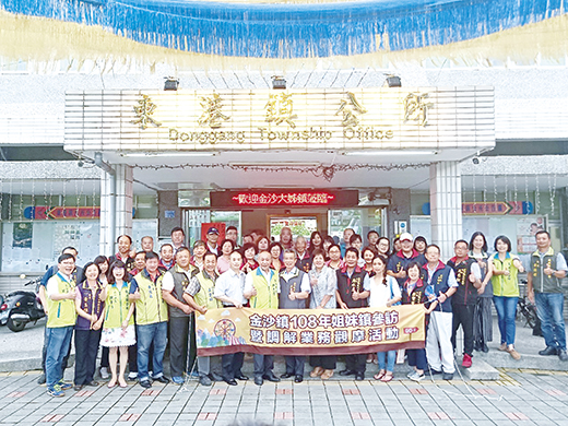金沙鎮長吳有家、金沙代表會主席周水土率領所會團隊,於6月12日至6月15日赴台展開為期四天三夜姊妹鎮拜訪行程。先後走訪雲林縣褒忠鄉、崙背鄉及屏東東港鎮,力邀今年10月到金沙參與風獅爺文化季活動,期盼彼此多交流互訪、居民多往來,以活絡觀光、文化及促進經濟發展。 金沙鎮長吳有家、金沙代表會主席周水土率領所會團隊,於6月12日至6月15日赴台展開為期四天三夜姊妹鎮拜訪行程。首站前往雲林縣褒忠鄉,兩地姊妹鎮締結已十年,受到新任鄉長陳建名及代表會主席許家源等熱情歡迎。接續拜訪締結姊妹鄉鎮十五年的崙背鄉,受到新任鄉長李泓儀、代表會主席蔡誌山等熱忱接待。 金沙鎮和東港鎮締結姊妹鄉鎮最悠久,已邁入四十五年。東港鎮於今年五月到訪金沙鎮,金沙鎮則於6月回訪,受到東港鎮鎮長徐志雄及代表會主席洪慶田及所會團隊熱烈歡迎。