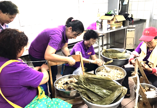 述美愛心志工為全校師生包粽子