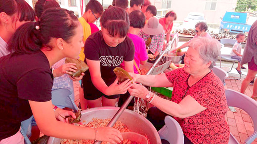 家扶親子慶端午,粽出好親情! 端午佳節金門地區處處飄粽香,金門家扶中心於6月7日上午辦理端午佳節「粽出好親情」活動,邀請受扶助家庭親子共同出席參加。本次端午節活動由金門家扶中心家庭扶助組的社工員籌辦,一早就張羅好包粽子材料,還借來大鼎準備煮包好的粽子,等待著報名參加的親子前來。 活動開始後將參與活動的家長與孩童們兵分兩路,家長們由擔任家扶中心溫媽媽志工隊的志工王素蘭,在活動中指導家長們「一起包粽趣」,體驗包粽子的趣味。另一組孩童們在報到後,就由家扶中心金門大學志工隊的大哥哥和大姐姐們帶領,前往古寧頭雙鯉湖周邊寫生、闖關以及觀賞龍舟賽。 金門家扶中心舉辦的端午節活動,參與的家長們在志工的陪伴下動手包起粽子。年紀較長的媽媽們馬上回憶起年輕時的功夫,大致上竹葉包粽子對她們來說,都不是什麼大問題。但是對年輕的媽媽們來說,吃粽子上街買,沒有自己包粽子的經驗,起初綁出來的粽子,每一個大小和形狀都不會相同,但是都體驗到親自動手的樂趣。之後在志工講師和身經百戰的資深媽媽們出手指導下,一顆顆完美的粽子掛滿在竹竿上等待著下鍋。 金門家扶中心主任李桂平表示,希望藉由此次活動的辦理,讓家長們可以參與包粽子的樂趣,圖得半天的休閒時間,來放鬆心情體驗過節的氣氛,讓家長們有一個喘息的機會。 活動用餐時,看到孩童們吃到家長們包出來的一個個飽滿的粽子,親子間歡笑之聲在活動場地此起彼落沒有間斷過。活動結束後,每個家長一手拉著小孩,一手提自己包好的粽子,開心一起回家。今年的的端午節讓家扶的受助家庭,度過了一個讓親子共同出席,既溫馨又充滿粽香的端午假期。