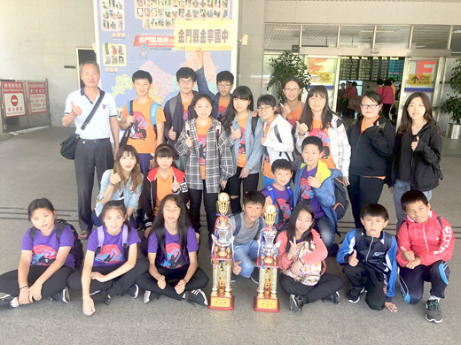 2019年高雄大社戰鼓神農豐盛季采風活動暨第七屆全國鼓陣大賽,於高雄大社青雲宮廟埕熱鬧舉行。金寧中小學太鼓隊從強敵環伺中一路過關斬將,全隊氣勢及整體默契,獲得評審高度青睞,勇奪全國鼓陣錦標賽中創意鼓藝公開組全國第三名,創意鼓藝中學組榮獲全國第五名殊榮! 為宏揚道教傳統文化,提升民俗傳統技藝並呈現大社在地藝文特色,第七屆全國鼓陣大賽,日前一連兩天在高雄大社青雲宮盛大登場。由於這是年度的全國鼓陣重要賽事,國內各鼓藝團隊無不視為爭取最高榮譽舞台,青雲宮現場匯聚全台各地各路高手,鼓聲雷鳴磅礡,彷彿身歷古代戰場。 金寧中小學太鼓隊參加全國鼓陣大賽,由帶隊王建立主任、王君茹組長老師指導隊員,該隊歷經24日比賽,隊員們都能表現出金門人團結、奮勇團隊精神,比賽中個人表現,可說是可圈可點。尤其公開組更是競爭激烈,來自全台各路高手,莫不使出渾身解數,展現自身專長特色,以吸引評審及全場觀眾目光,而其中評分項目主要是以自我風格與特色效果、肢體氣勢、音樂技巧、服裝造型體育精神四大元素為評分標準。由於當日晚間將立刻展開決賽,團員們在結束初賽後,立即返回休息區,並針對敵手狀況進行沙盤推演及應戰策略。王建立主任對全體隊員精神喊話,希望大家拚盡全力,呈現最完美演出!金門縣政府南區服務處段宜君副主任、立委陳玉珍南區服務處何柏霆主任攜帶多箱飲料,會同高雄市金門同鄉會、高雄市浯江金門同鄉會等,給予同學們加油打氣。金寧中小學太鼓隊在決賽的內容演出完整,整體氣勢及默契一致,都獲得評審加分,最後由寧中小國中部與國小部組合的隊伍榮獲創意鼓藝公開組全國第三名,創意鼓藝中學組榮獲全國第五名佳績。 捷報傳來,金寧中小學校長陳雅蘭特別感謝全體參賽師生的辛勞。陳校長指出,學校重視全人教育,在活動中培養學生團隊合作、激發其榮譽感,以凝聚團隊間情感與默契。太鼓隊藉由各類教學活動及社團訓練,形塑學生具備高抗壓、責任感,以及團隊合作等良好的人格態度。他也期許師生們再接再厲,明年一定會重返榮耀,更上層樓!
